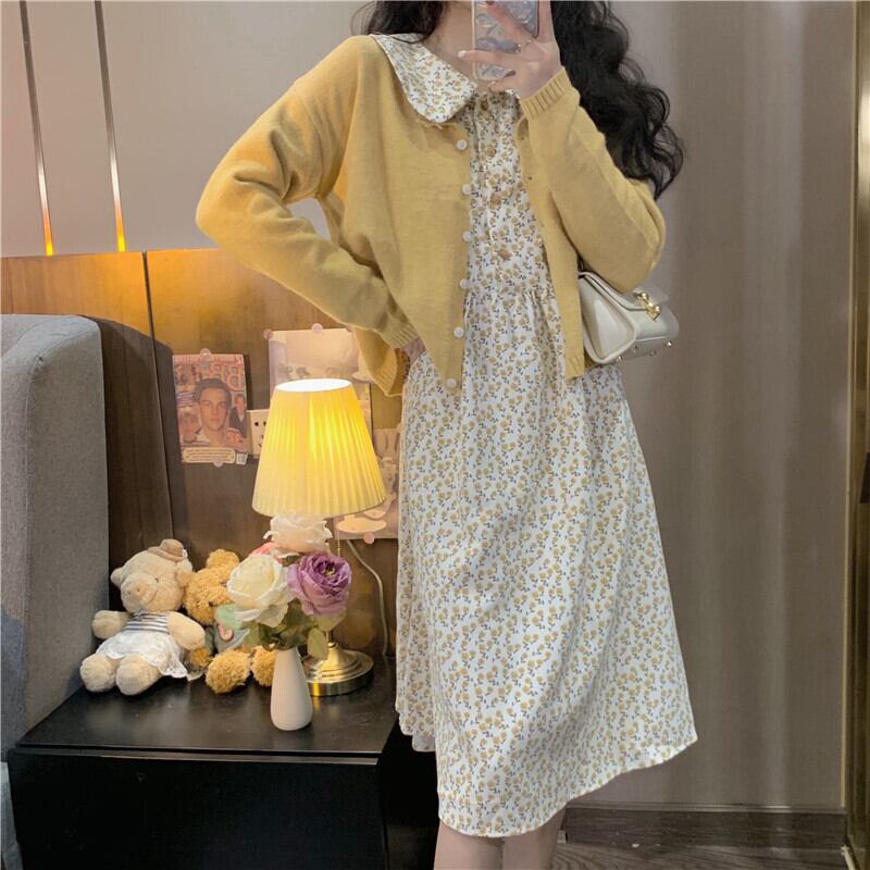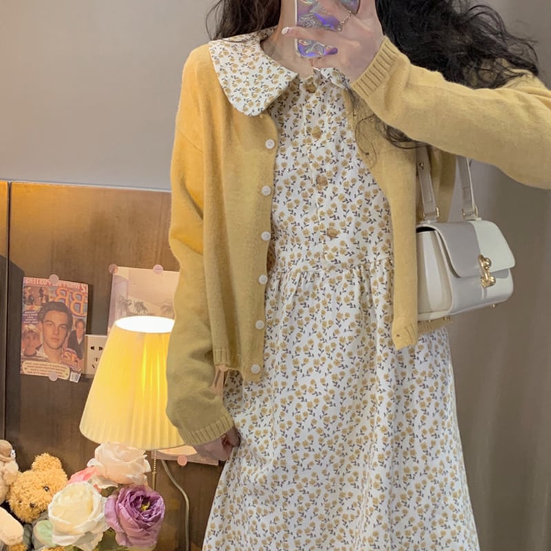 色:黄色いセーターワンピース,ワンピース