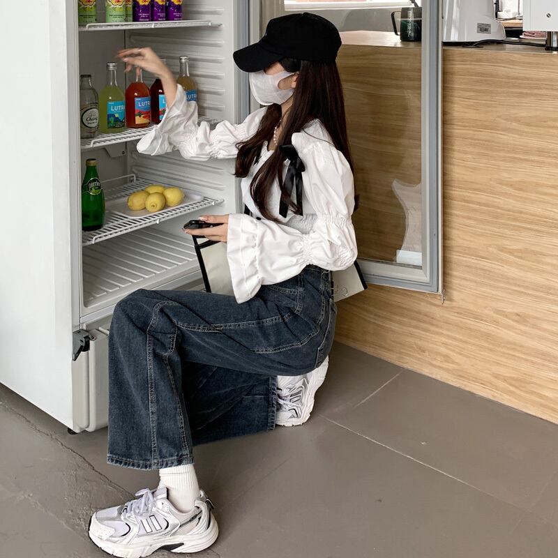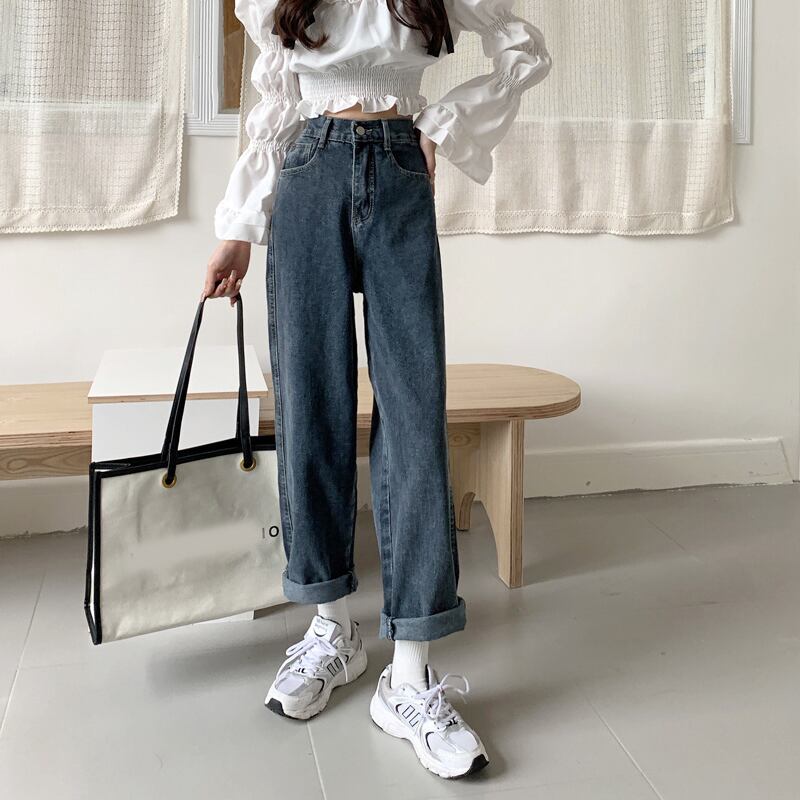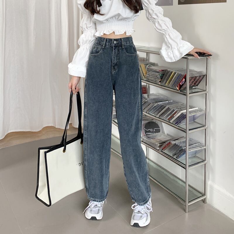 ジーンズ スプリング秋物ハイウェストウェストルーズワイドレッグパンツ ブルー 春物 オータム ワイドパンツ ウエスト SYJ41724502934