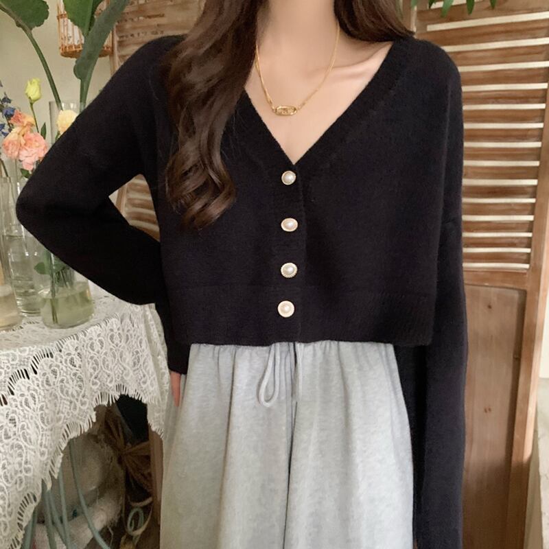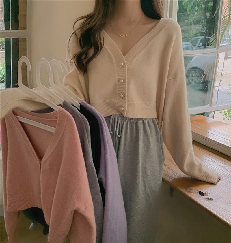 Vネックセーター ジャケット スプリングニットカーディガントップス 春物 パープル SYJ28640197160