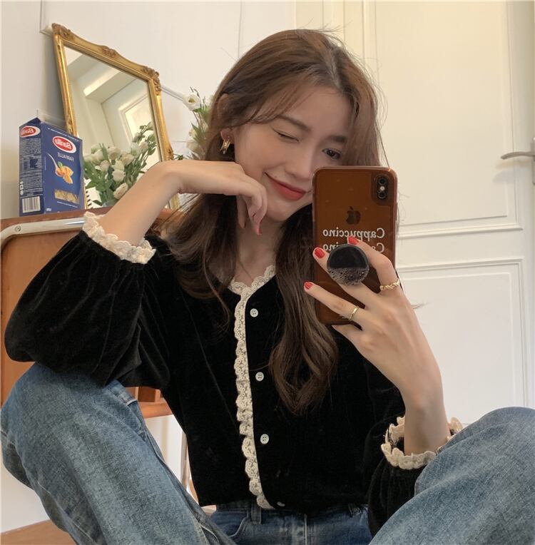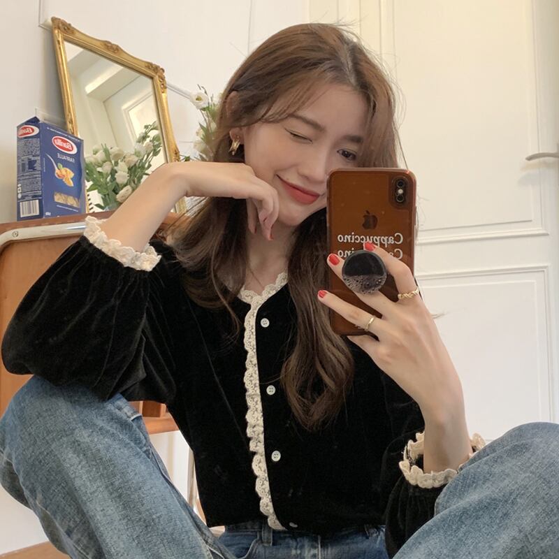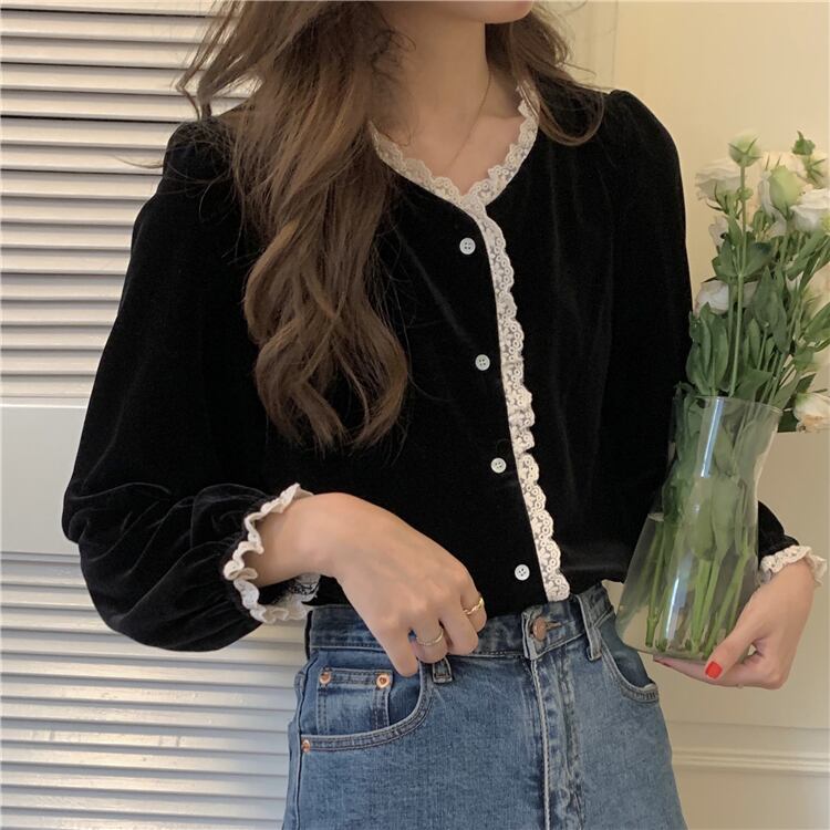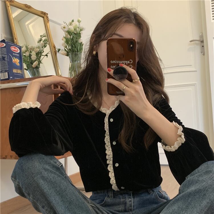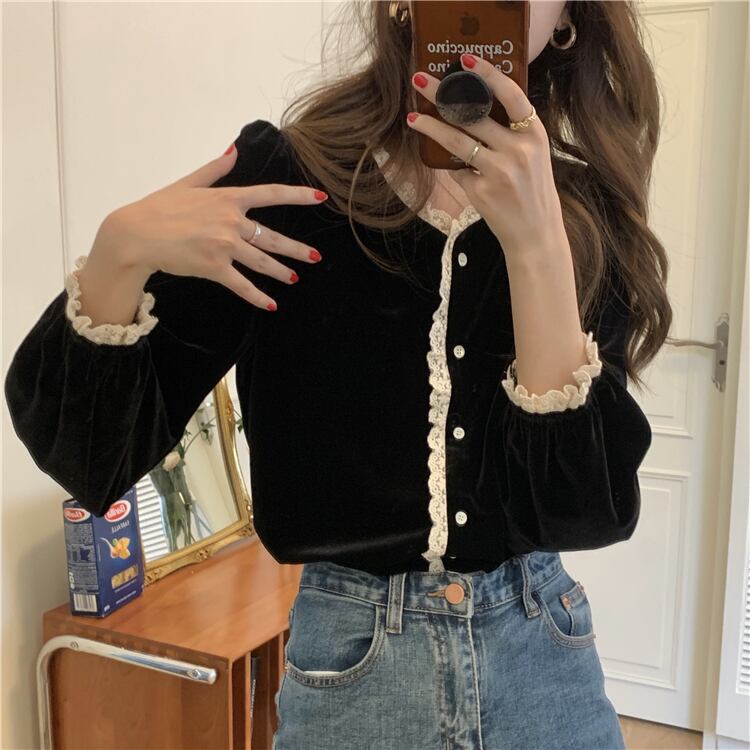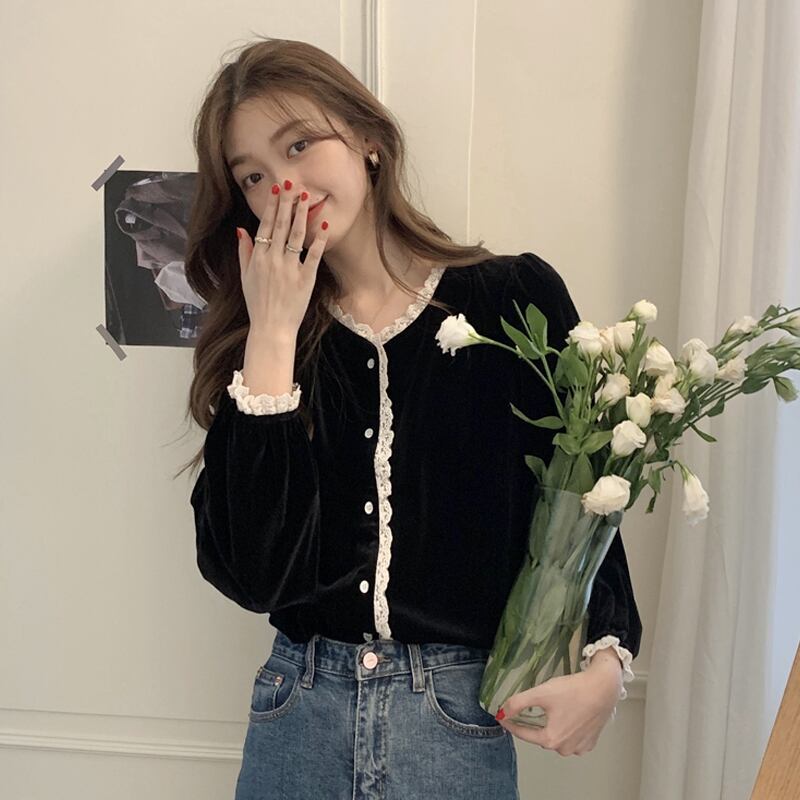 ブラック厚みシャツ スプリング秋物スタンダードスタイルトップス ロング レトロ 春物 オータム 長袖 SYJ17198908676