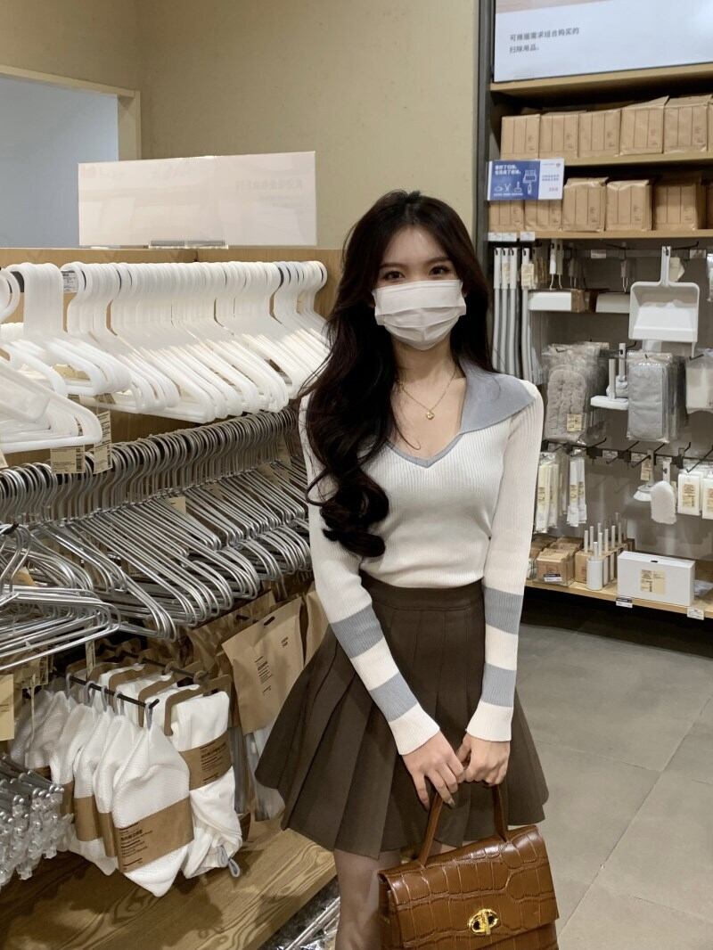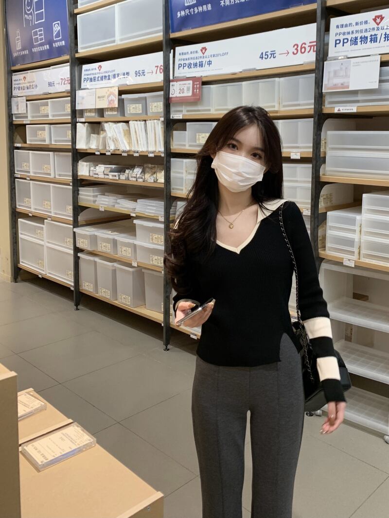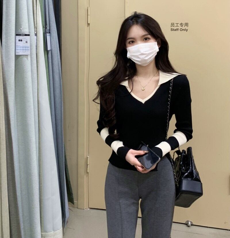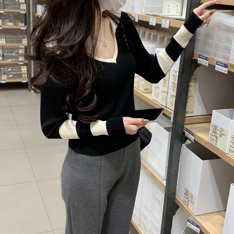 ブラックニットセーター スプリングゆったりシャツ ショートトップス 大人ガーリー スウィート キュート カジュアル 春物 SYJ4533610461