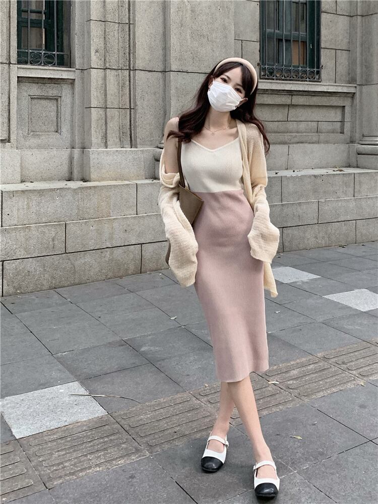 ニットワンピーススプリングスリムロングスカート 大人ガーリー スウィート キュート カジュアル 春物 ピュア NEW SYJ60247499569