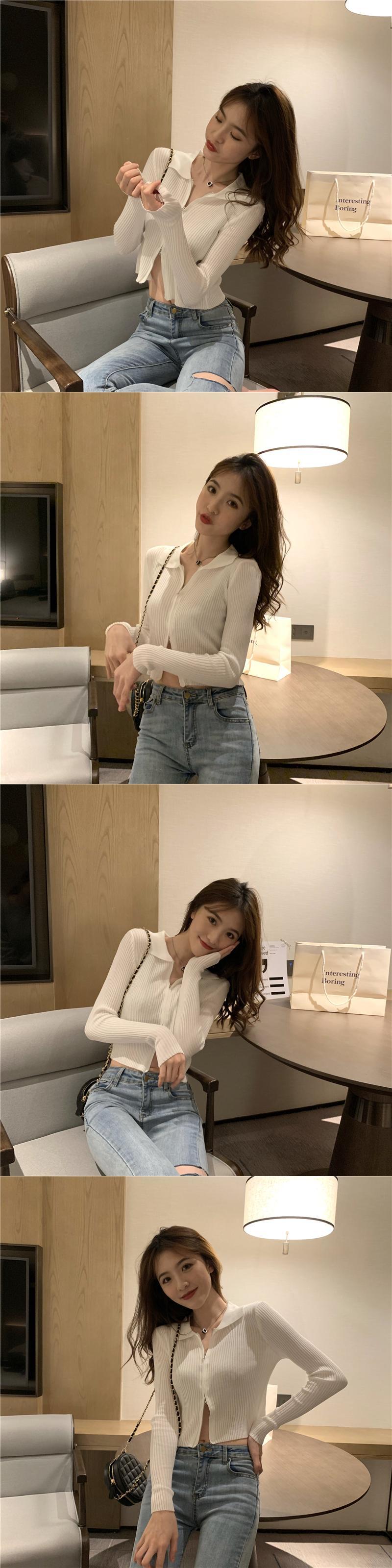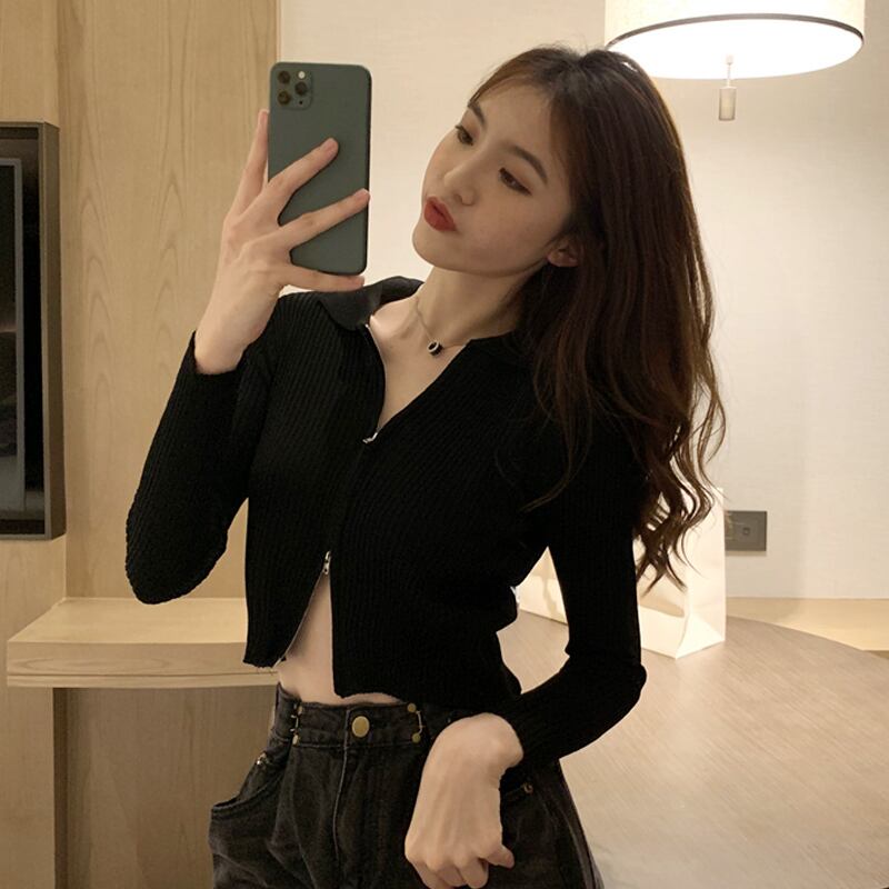 ブラックニットカーディガンスプリングショートダブルジッパーセーター ジャケット 春物 ピュア SYJ1170797525