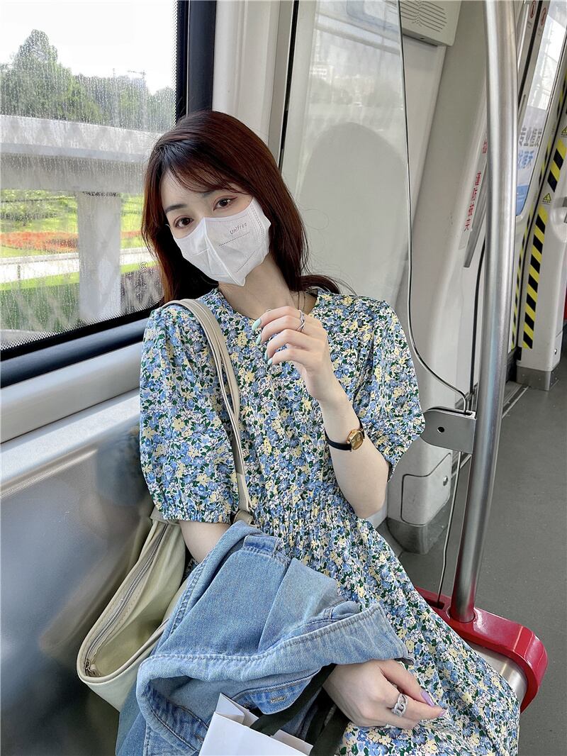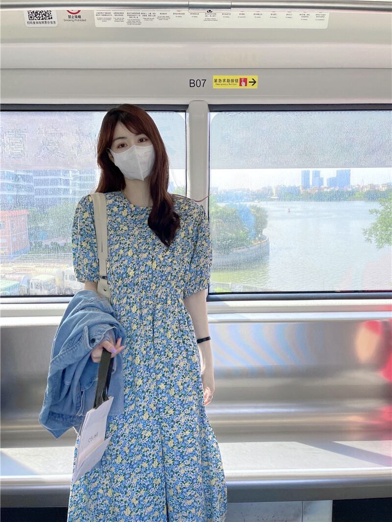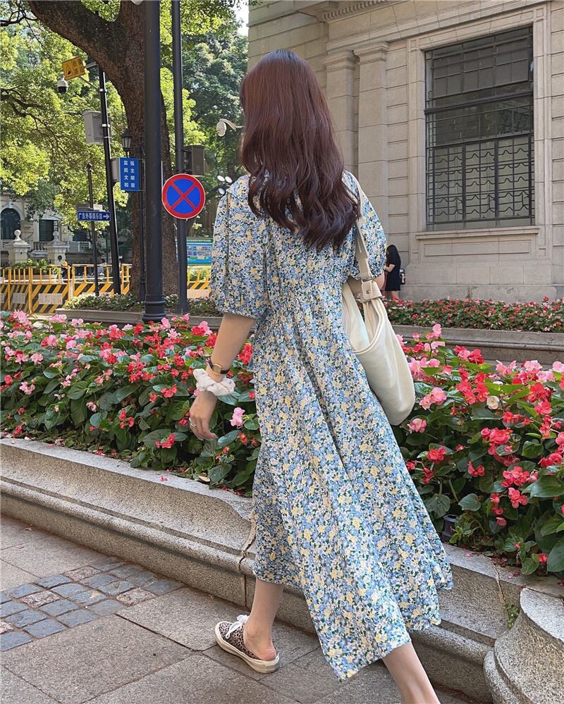 フローラルワンピース夏服ロングスカート 大人ガーリー スウィート キュート カジュアル 夏物 花柄 パフスリーブ SYJ55622855811