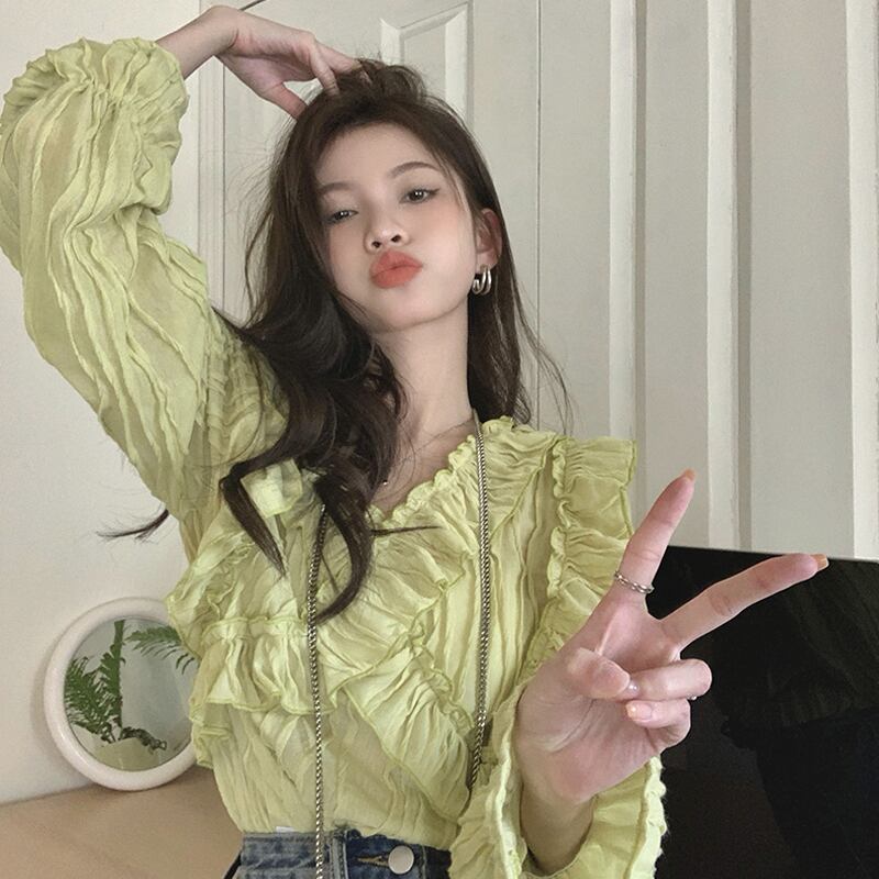 トップス スプリングVネックシフォンシャツ 春物 SYJ66299221513