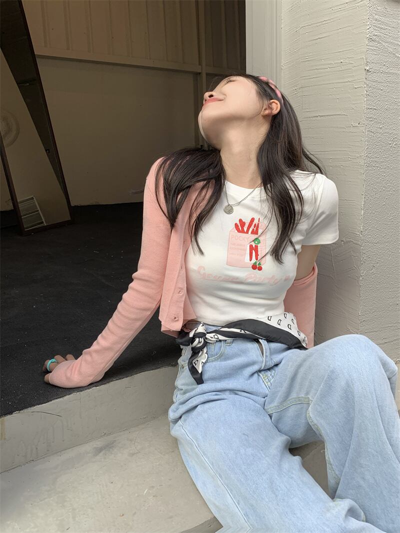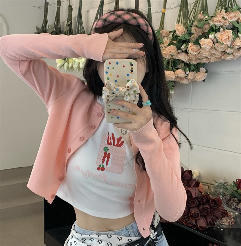 ニットカーディガンジャケット スプリング薄手ショートトップス NEW ピンク 大人ガーリー スウィート キュート カジュアル 春物 SYJ61403695878