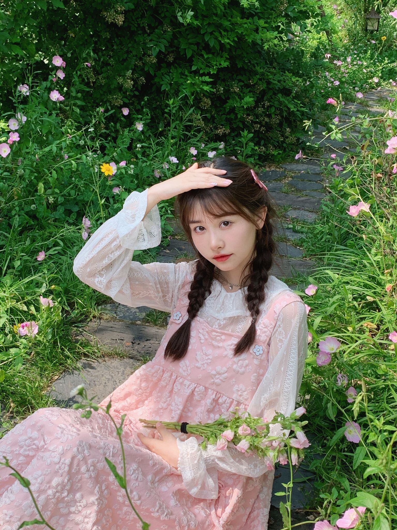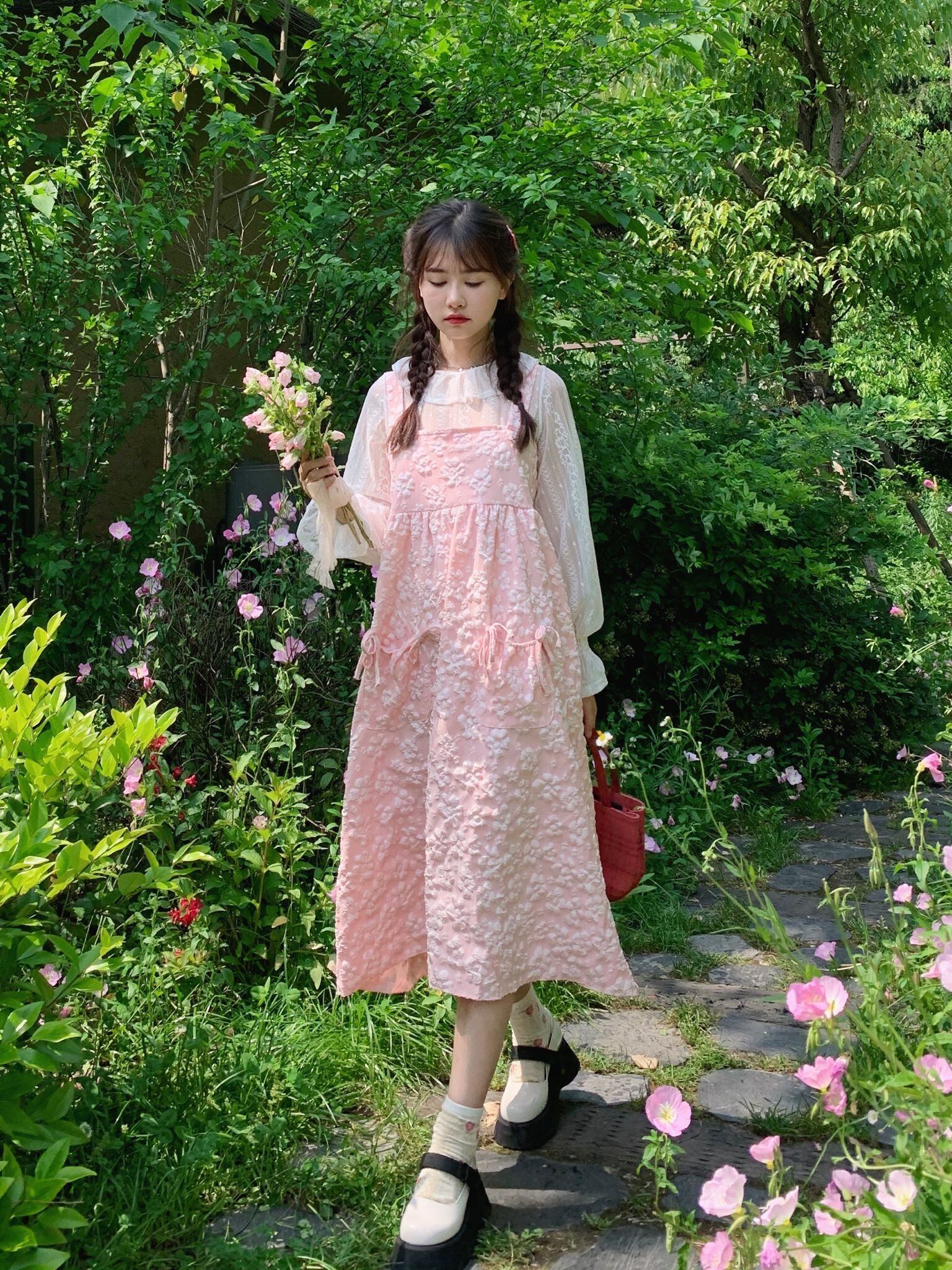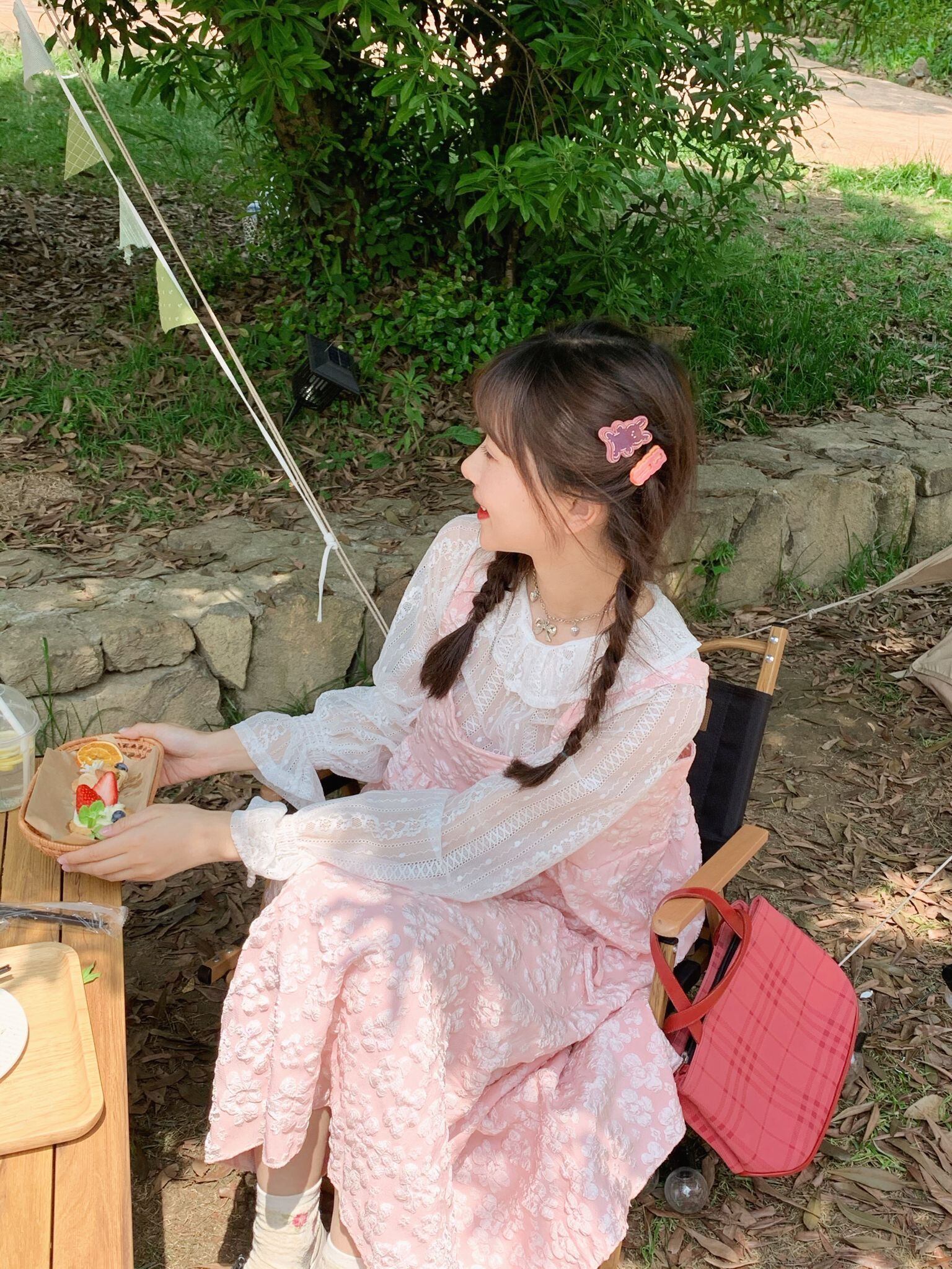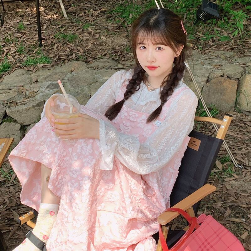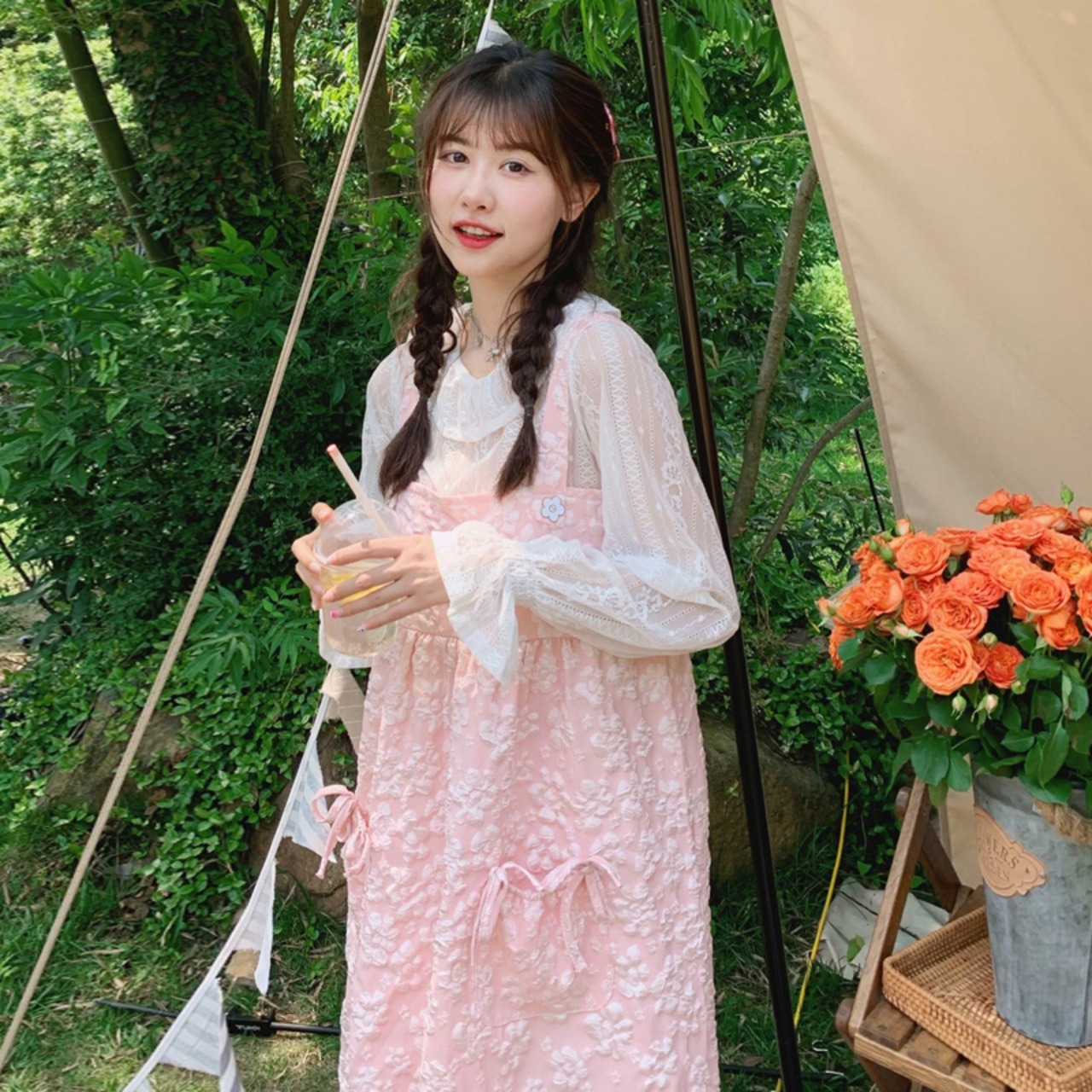 色:白いレースのシャツワンピース,ピンクのベストドレスワンピース