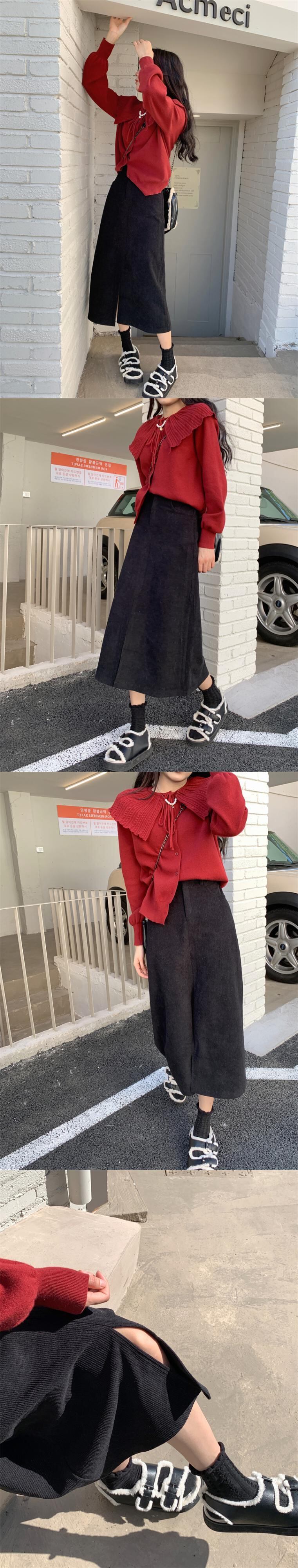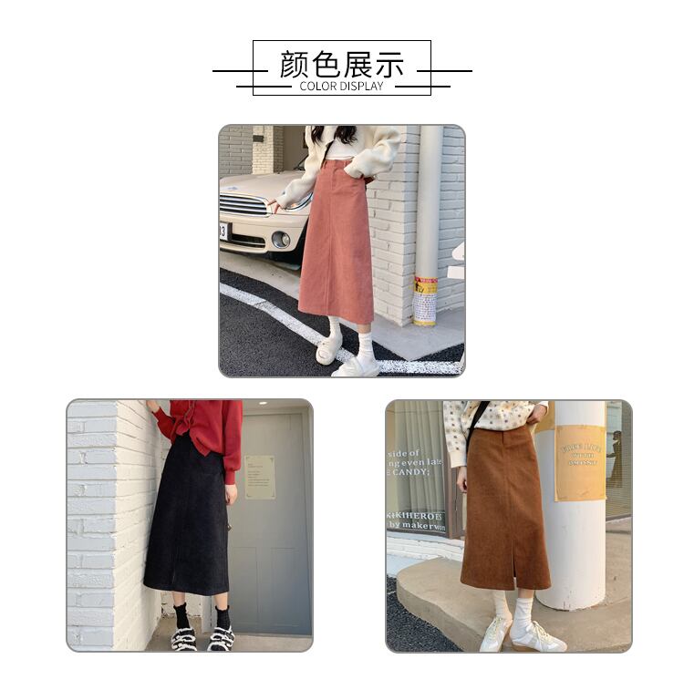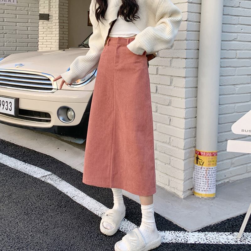 コーデュロイスカート スプリング秋物Aラインハイウェストウェストロング ピンク 春物 オータム ウエスト ミドル丈 SYJ61108924905
