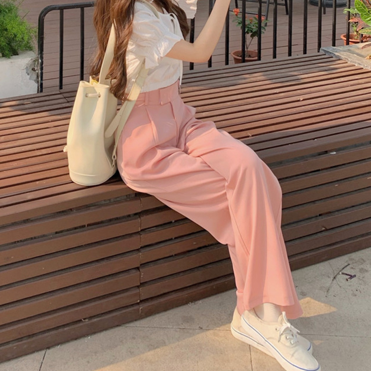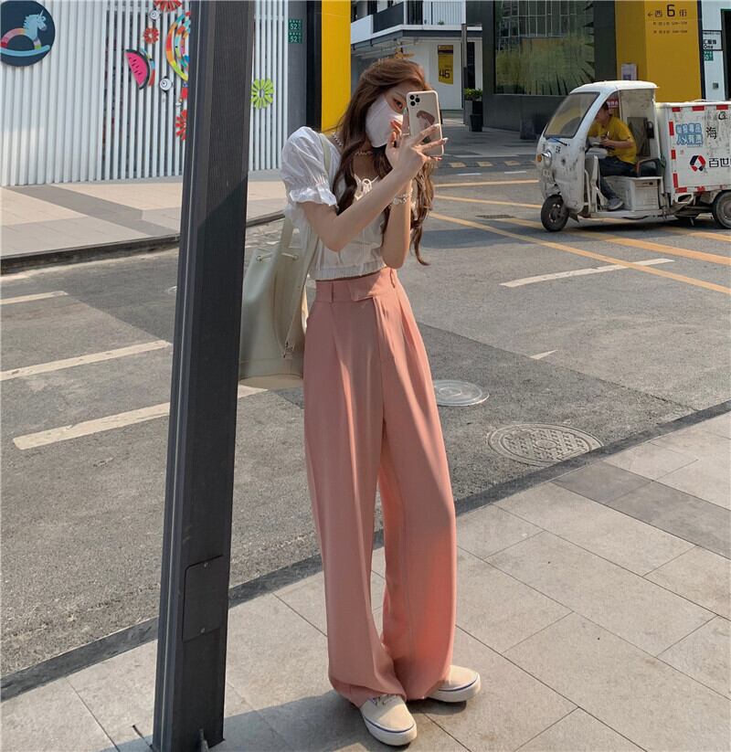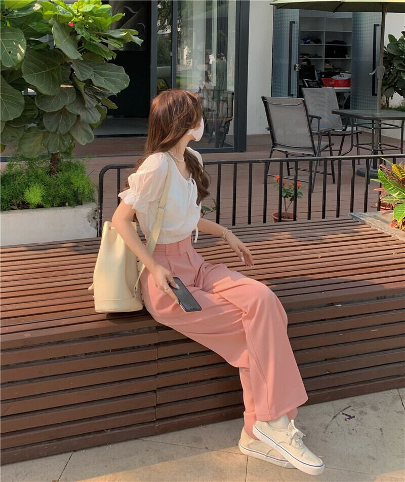 パンツ 夏服ハイウェストウェストルーズ ピンク 夏物 ウエスト SYJ70151365105