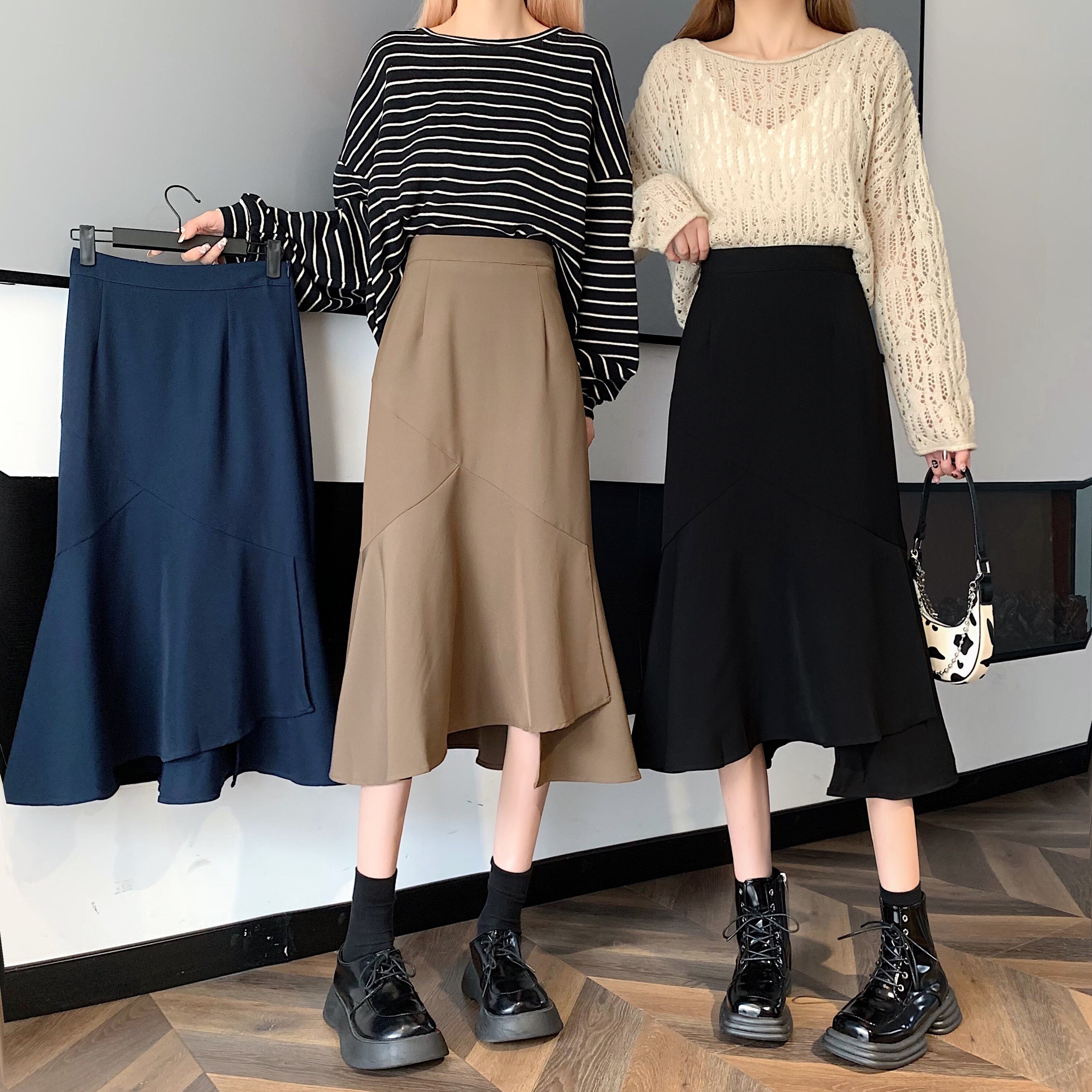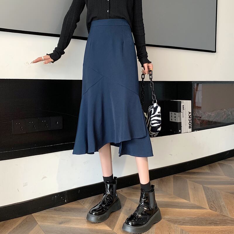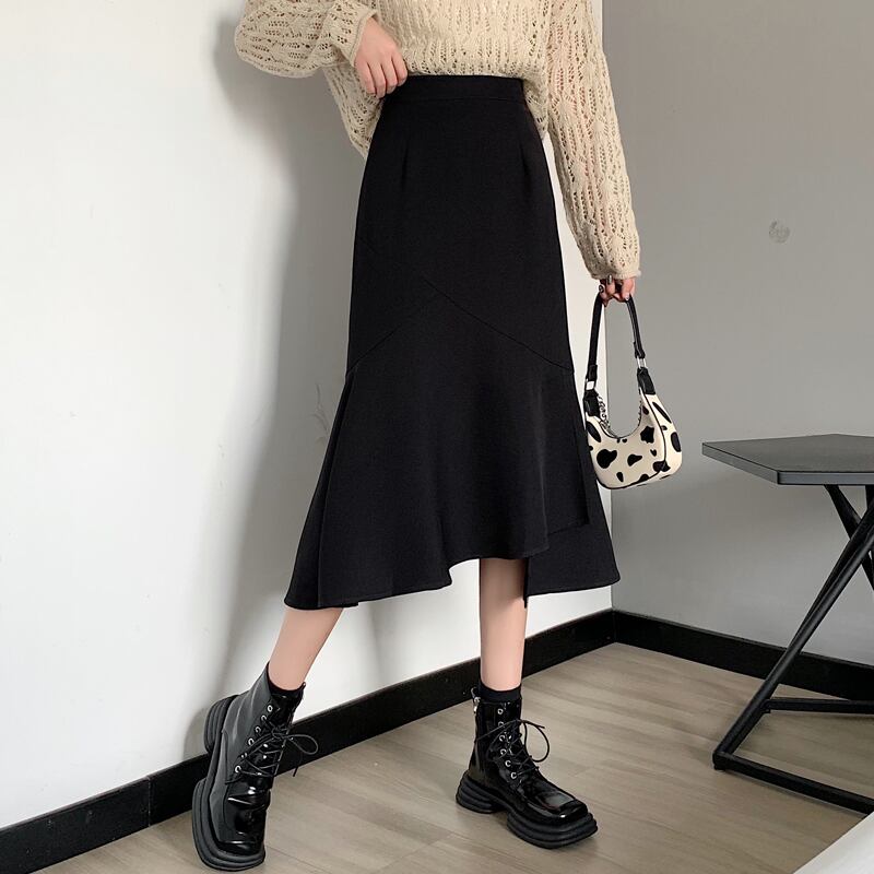 ブラックスカート スプリング秋物ハイウェストスリムAラインロング 春物 オータム ウエスト SYJ98986748598