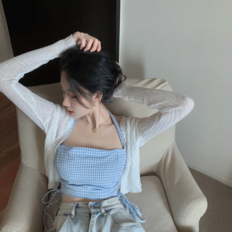 ホルター格子柄レディースショートトップス 夏服 大人ガーリー スウィート キュート カジュアル 夏物 SYJ3261037406