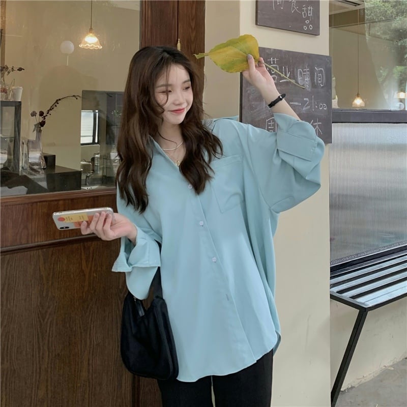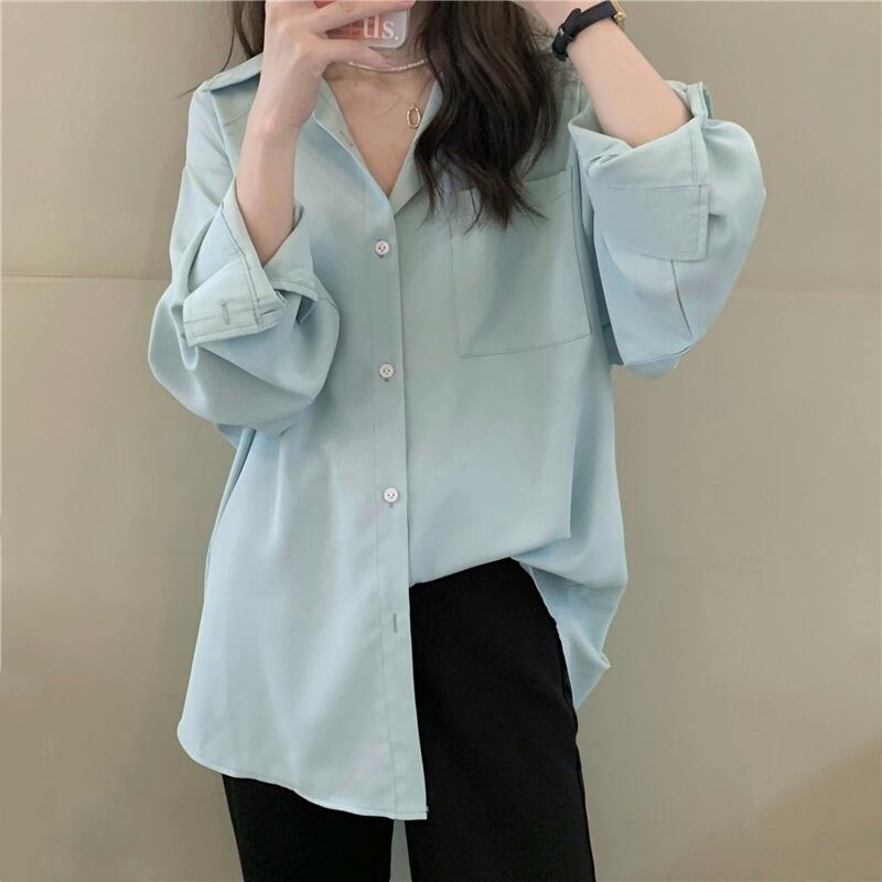 ブルーシャツ ジャケット スプリングスタンダードスタイルトップス ロング レトロ 春物 長袖 SYJ67220535328