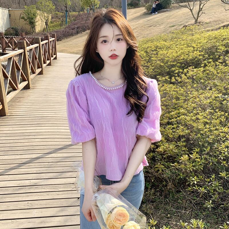 トップス 夏服スタイルシャツ 大人ガーリー スウィート キュート カジュアル 夏物 パープル SYJ70780490454