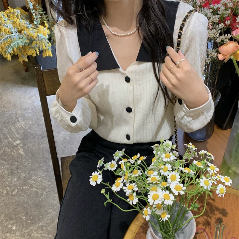 ホワイトシャツ スプリング韓国ファッショントップス ロング 大人ガーリー スウィート キュート カジュアル 春物 長袖 SYJ66105796982