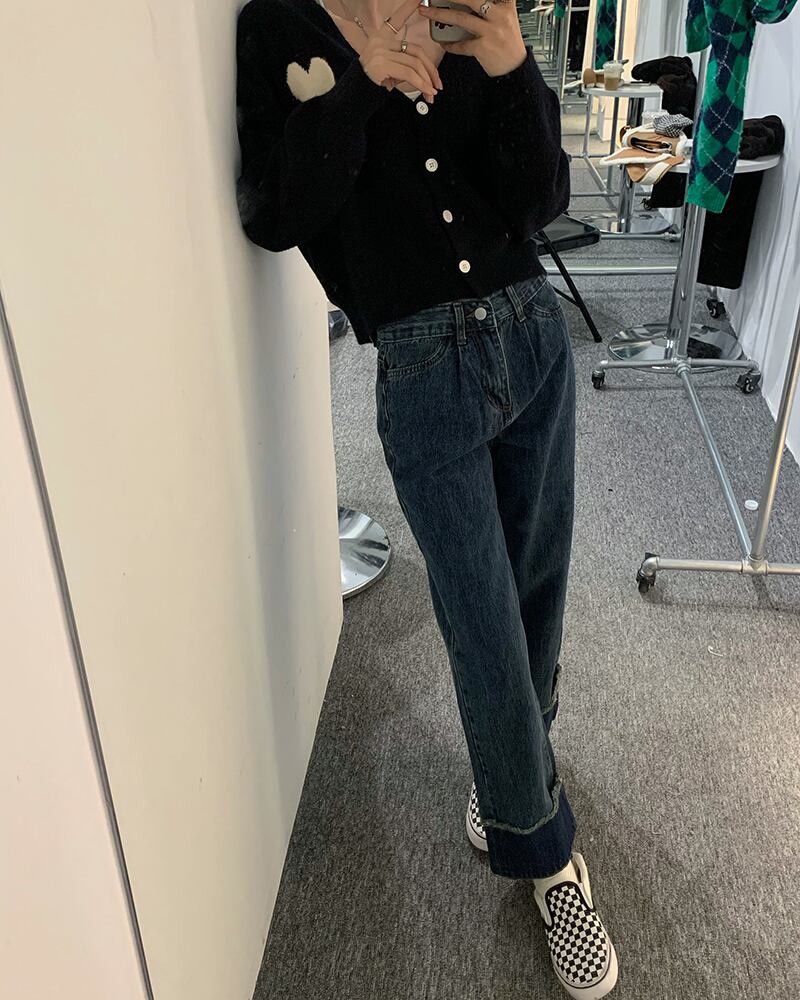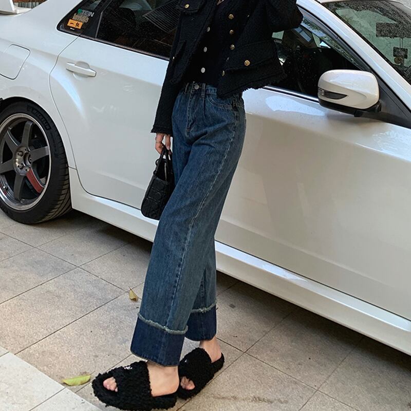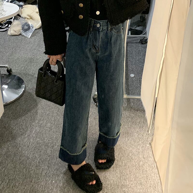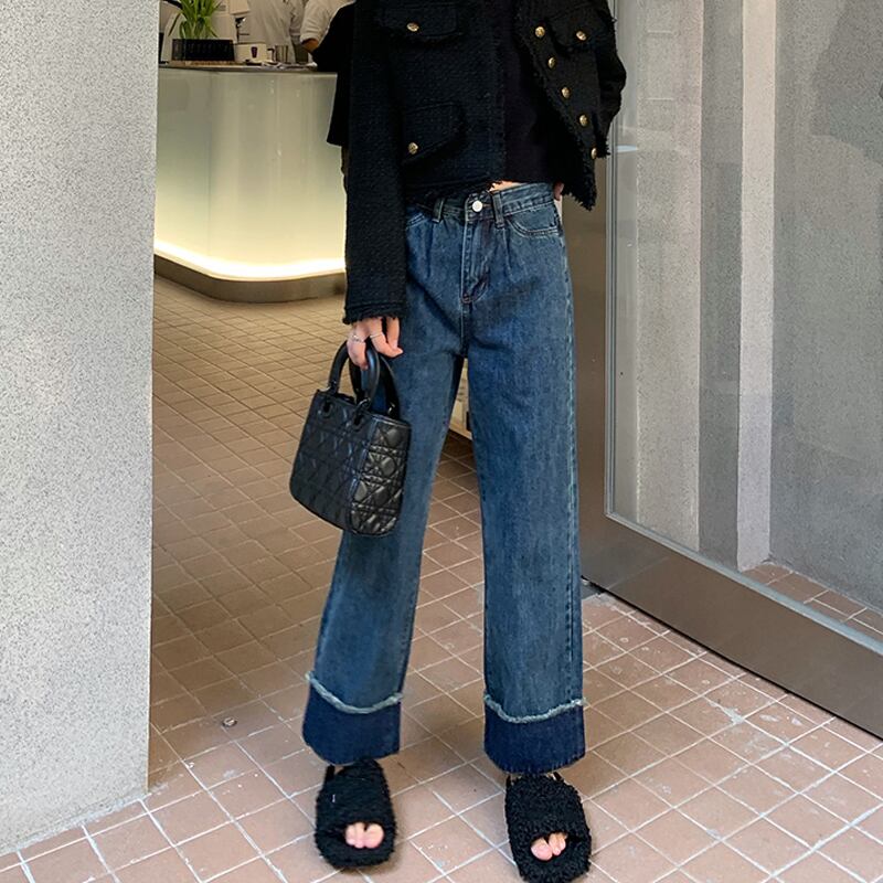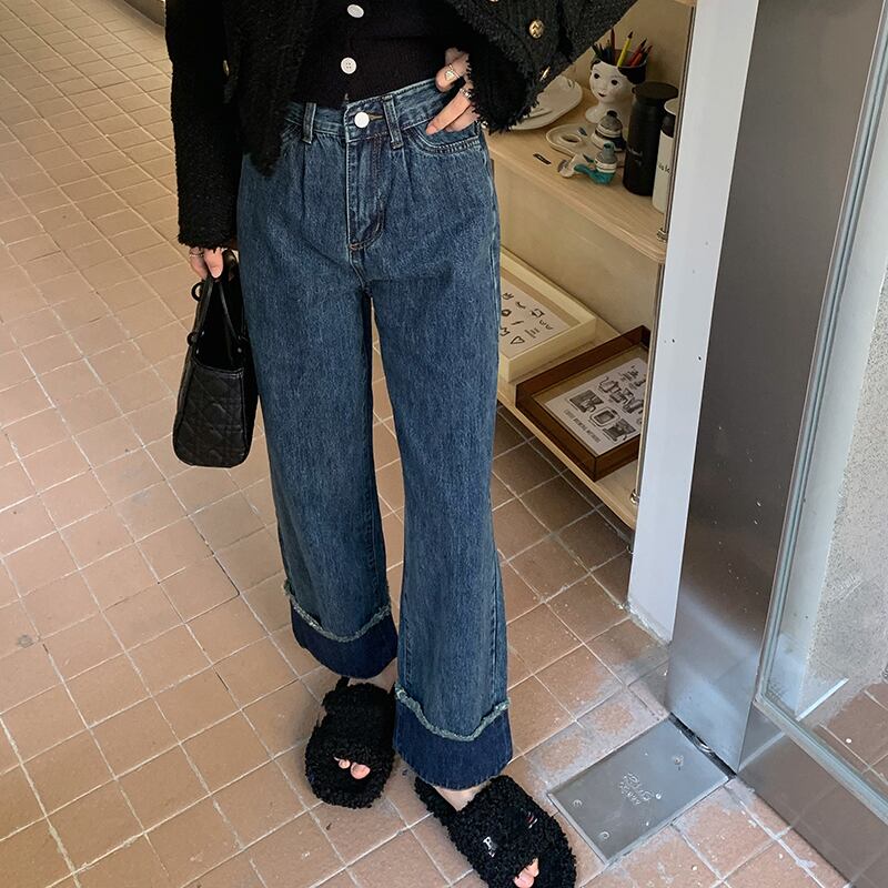 ダークブルーハイウェストジーンズ スプリング秋物ルーズパンツ ストリート 春物 オータム ウエスト SYJ5652626364