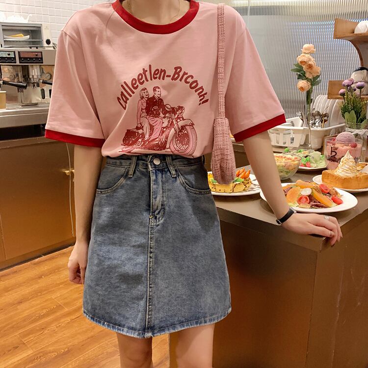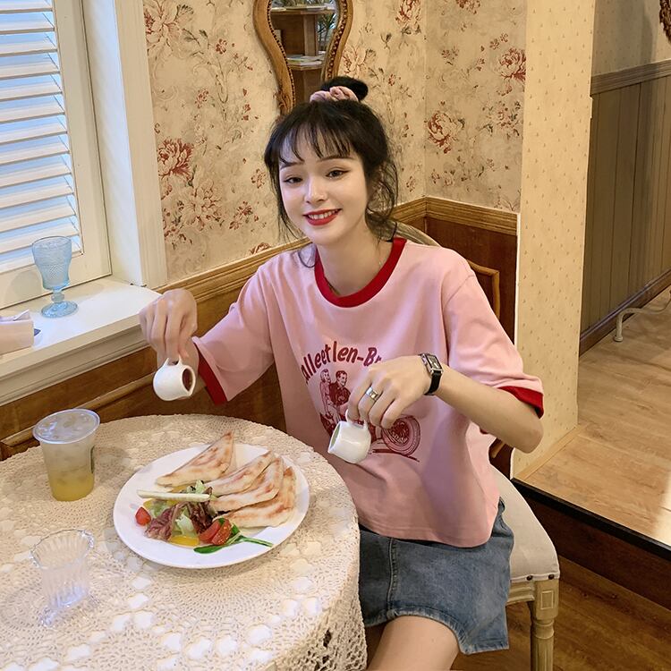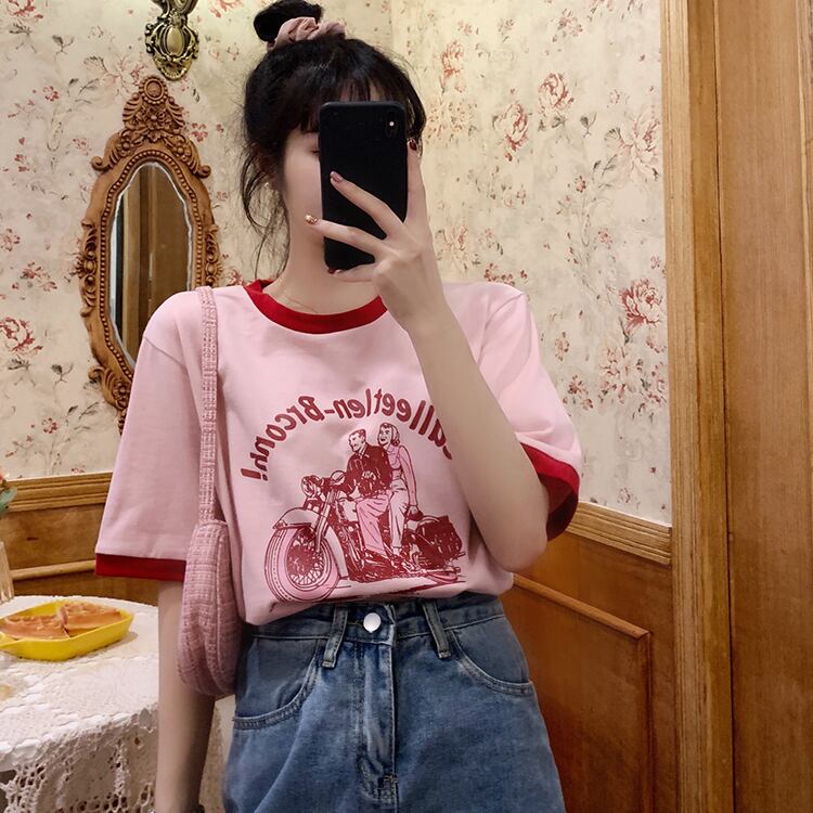 スタンダードショートTシャツ夏服トップス NEW ピンク レトロ 夏物 SYJ78672528438