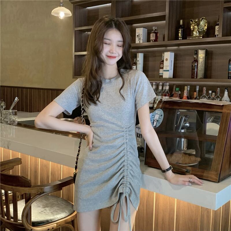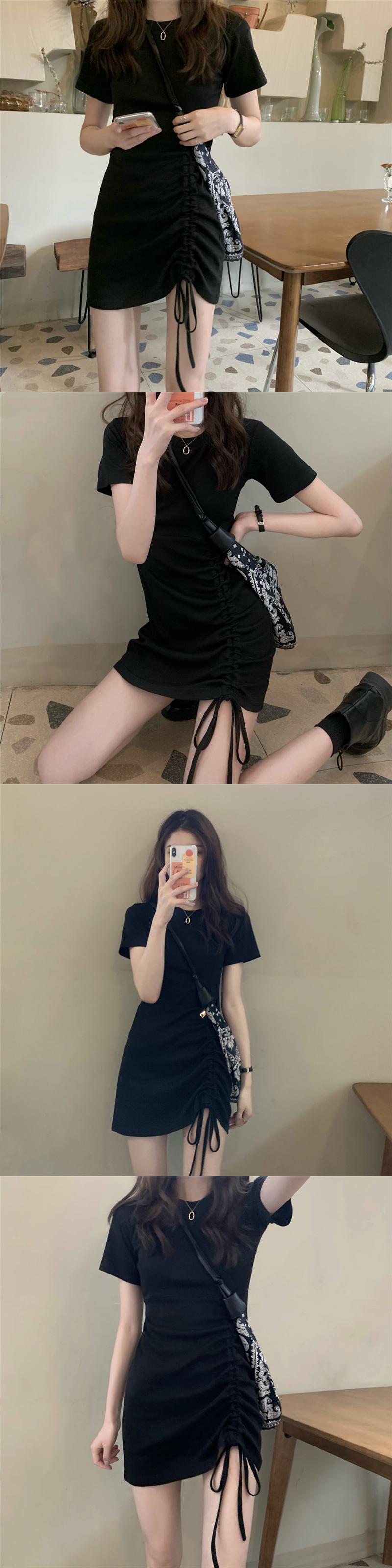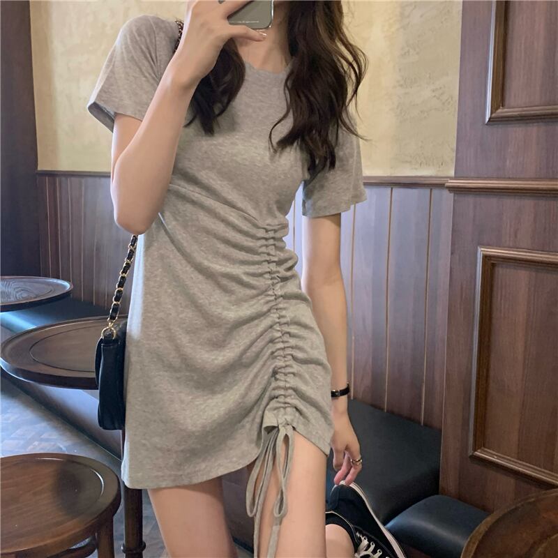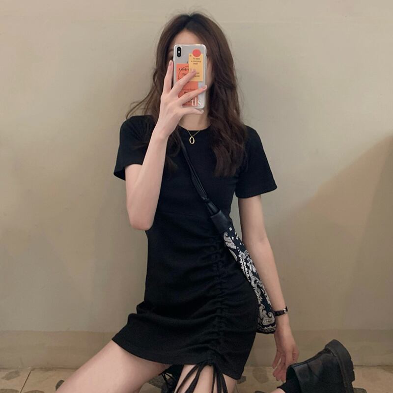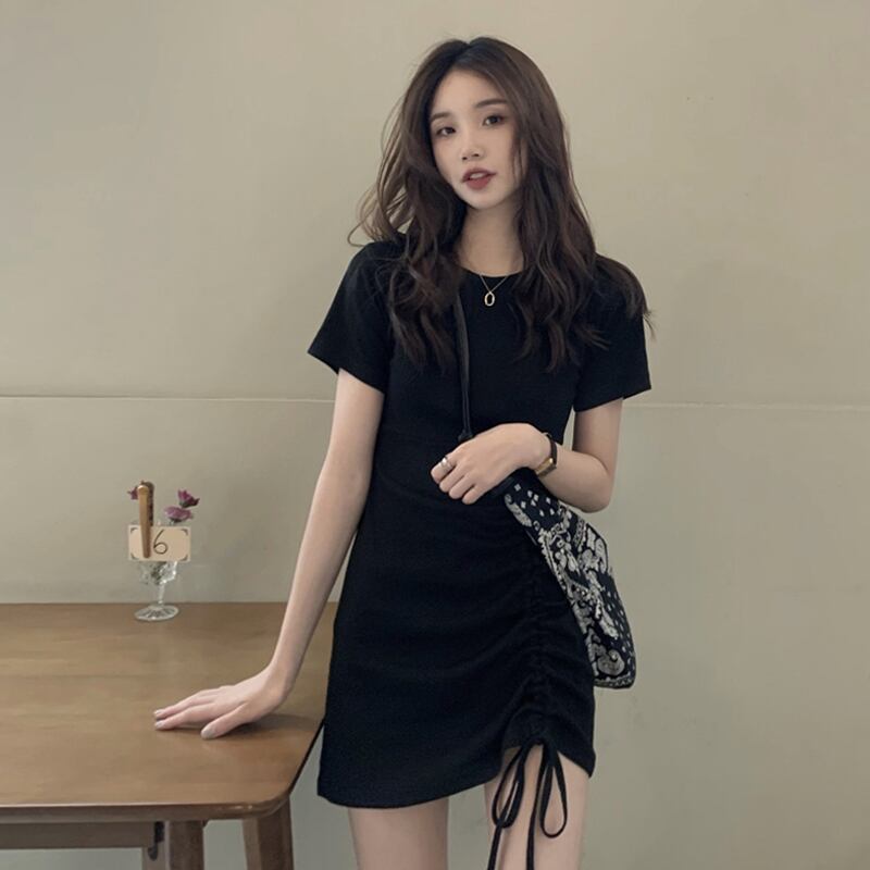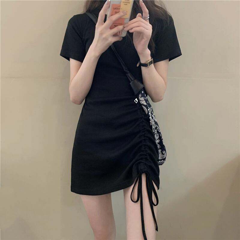 ブラックTシャツワンピース夏服スリムショートスカート 夏物 SYJ55753390029