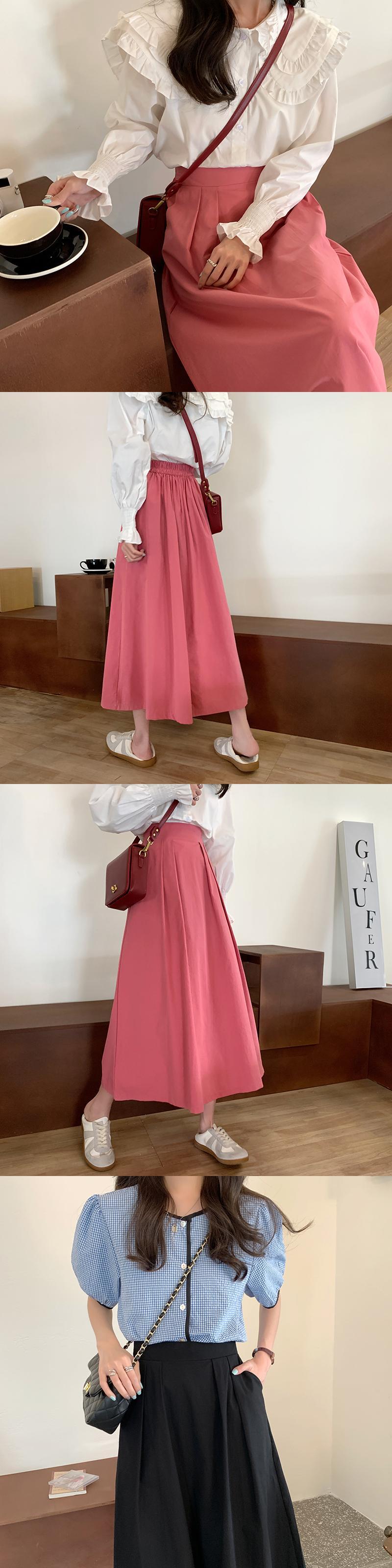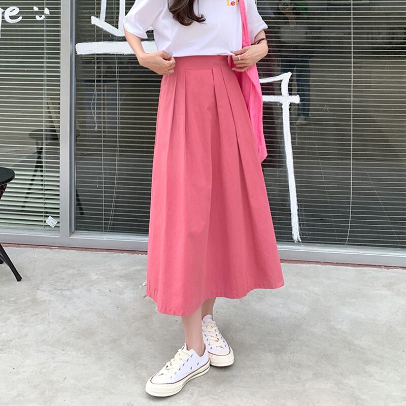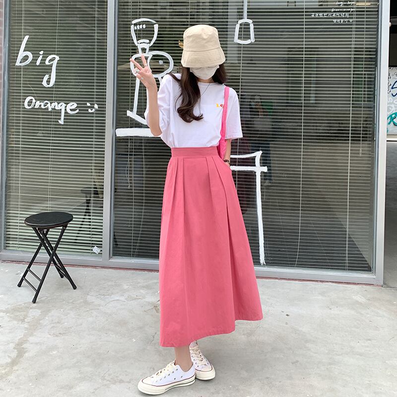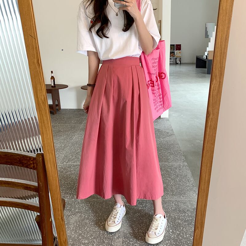 スカート スプリングハイウェストウェスト薄手Aラインロング ピンク 春物 ウエスト SYJ56506596518