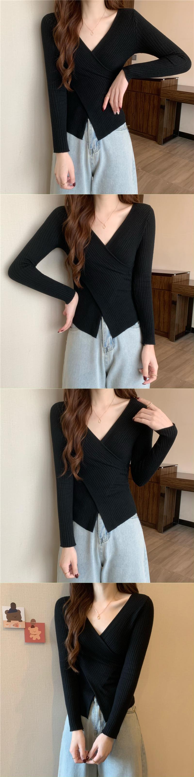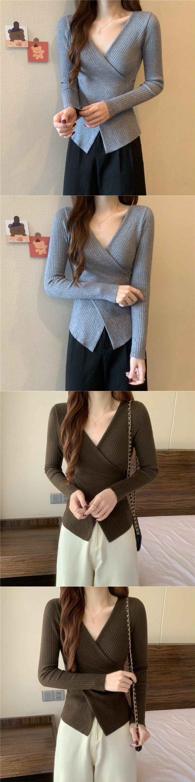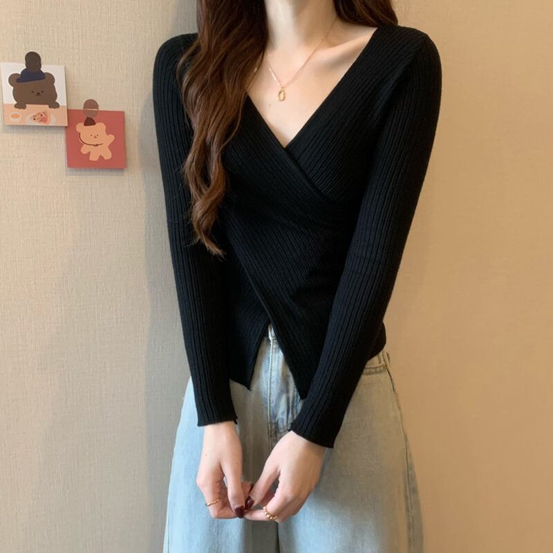 クロスVネックニットセーター スプリングゆったりシャツ トップス 春物 SYJ21239983752