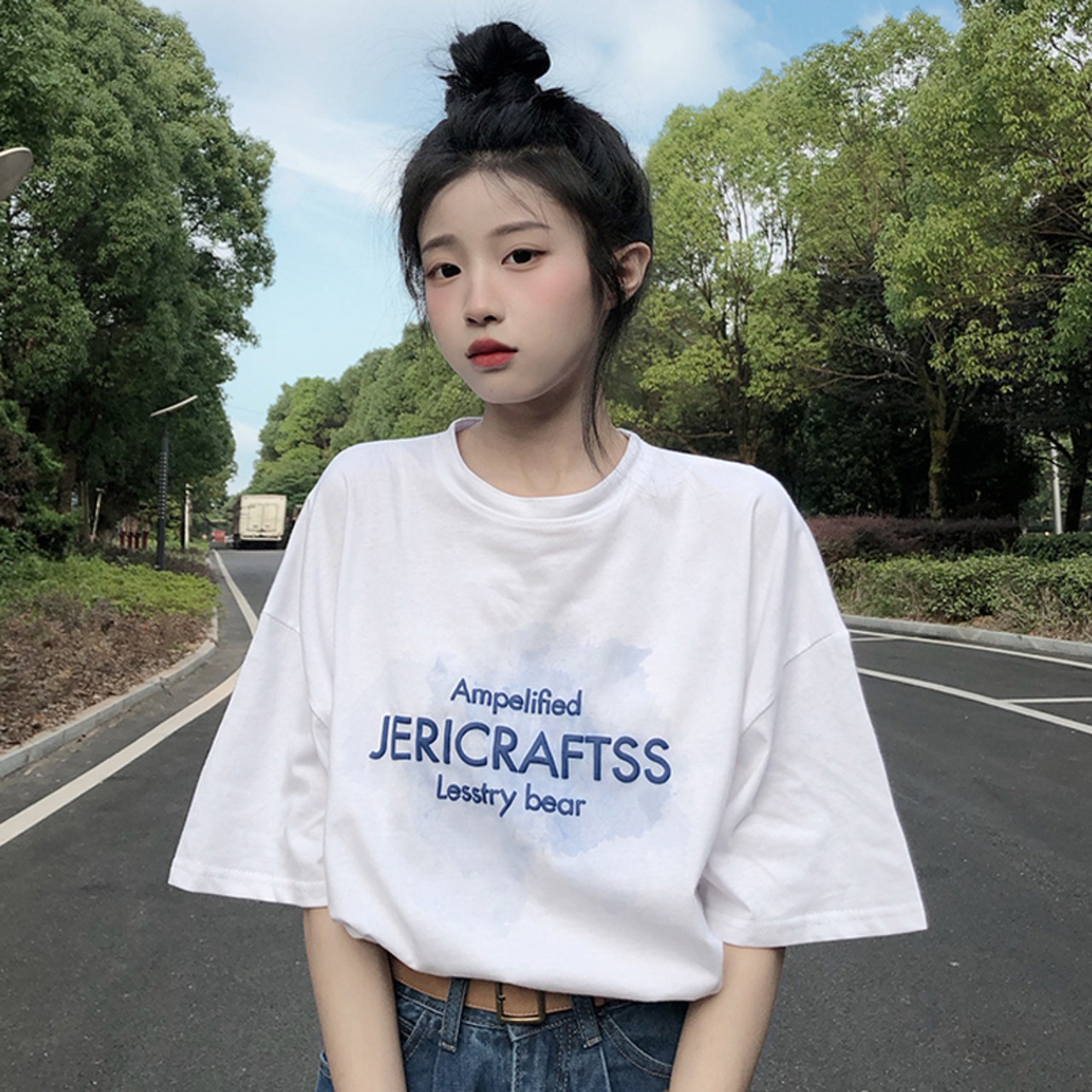 ホワイトTシャツ夏服ルーズトップス 夏物 SYJ19232763182