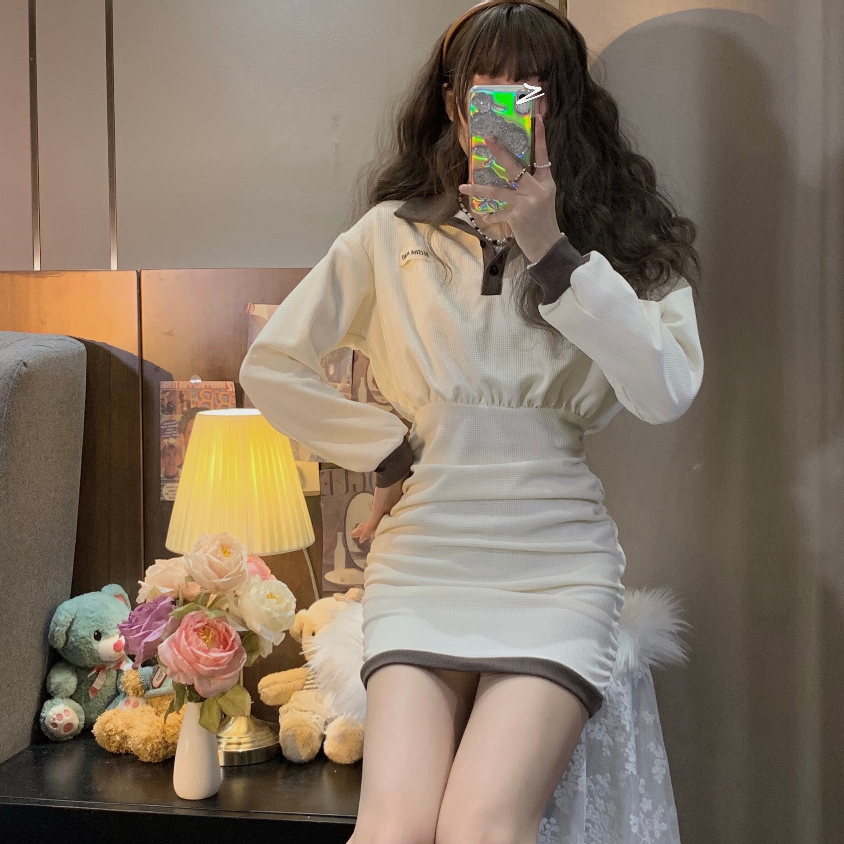 ワンピーススプリングスリムショートスカート 大人ガーリー スウィート キュート カジュアル 春物 SYJ37632947108