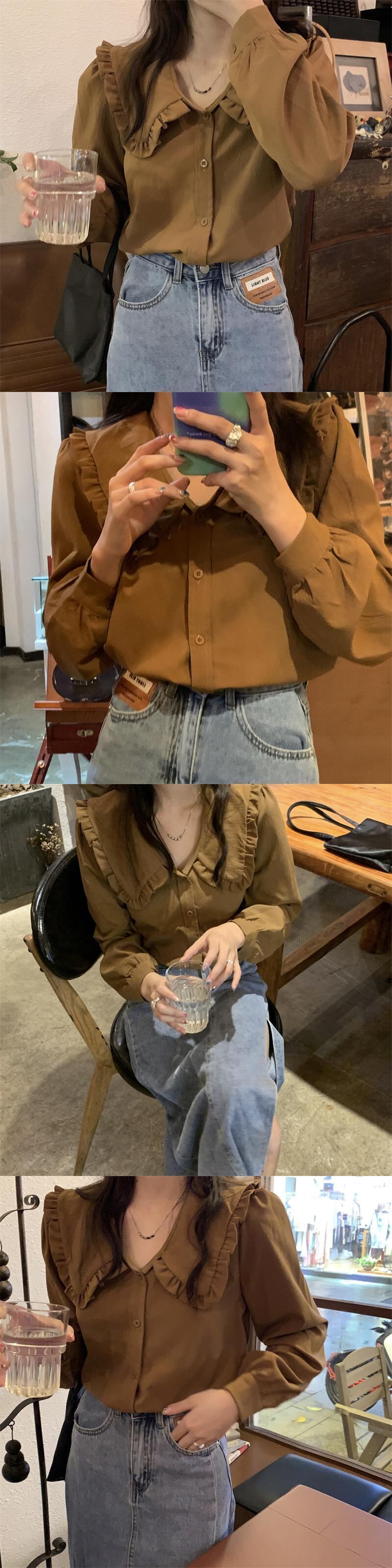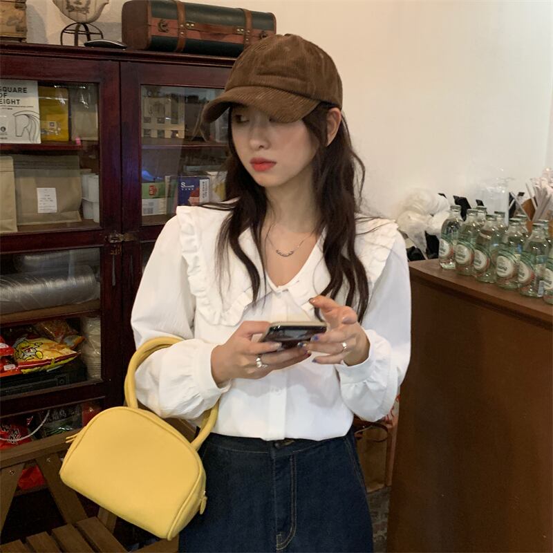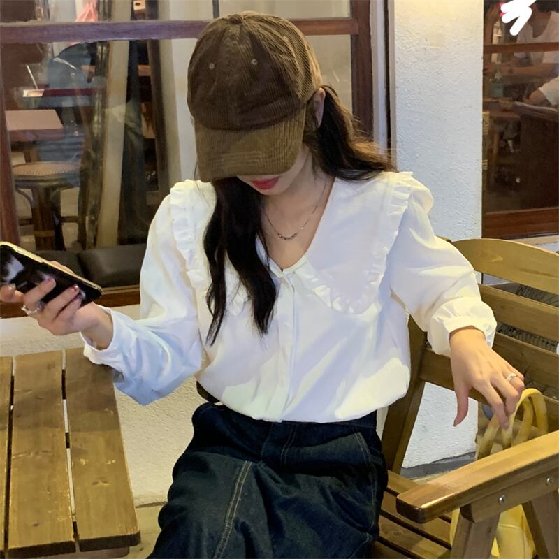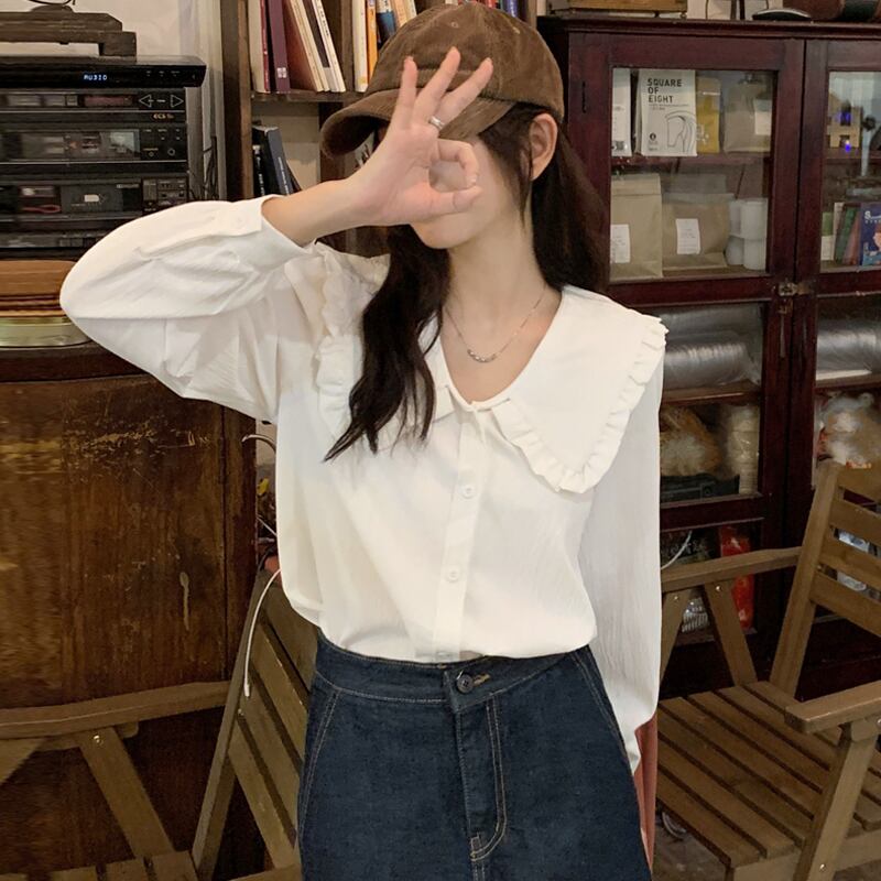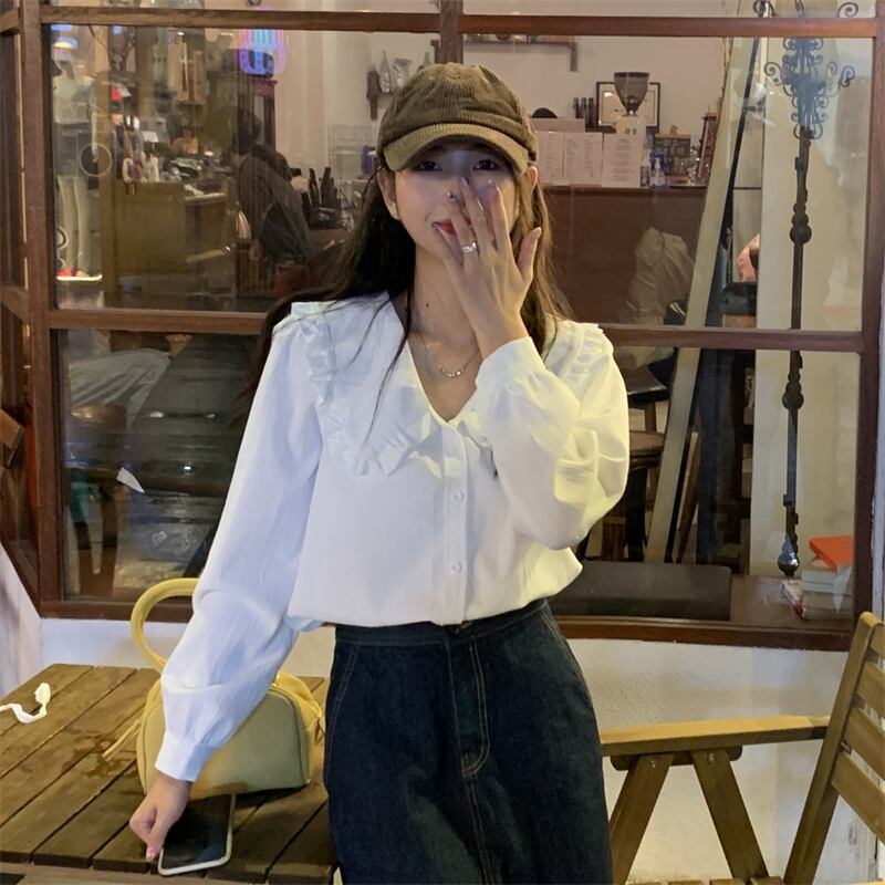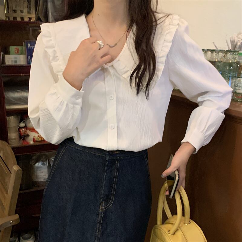 ホワイト長袖スリーブカラーシャツ スプリング秋物トップス ロング 春物 オータム SYJ70514872029