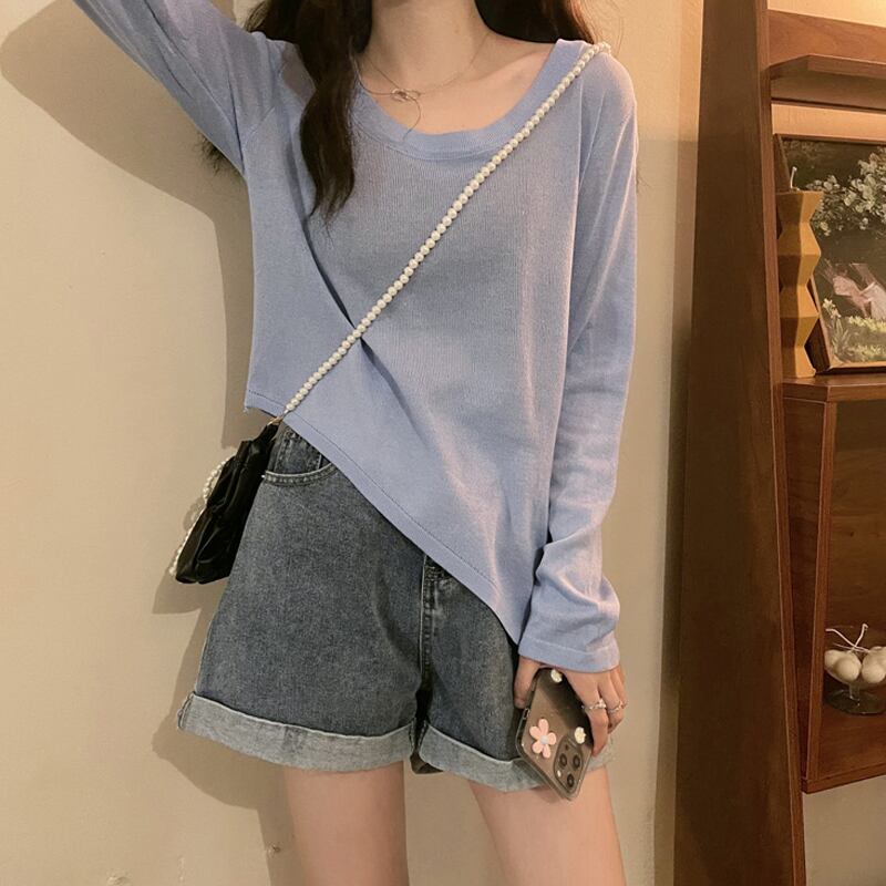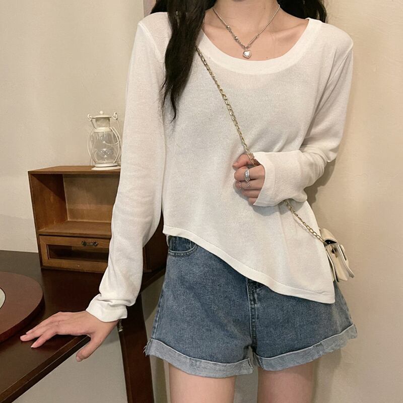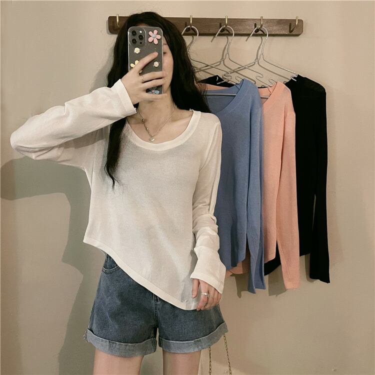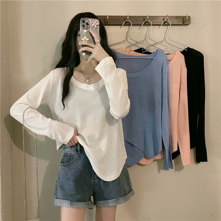 ソリッド カラーTシャツシャツ スプリング秋物薄手ゆったりトップス ロング 春物 オータム ソリッドカラー 長袖 SYJ70273115726