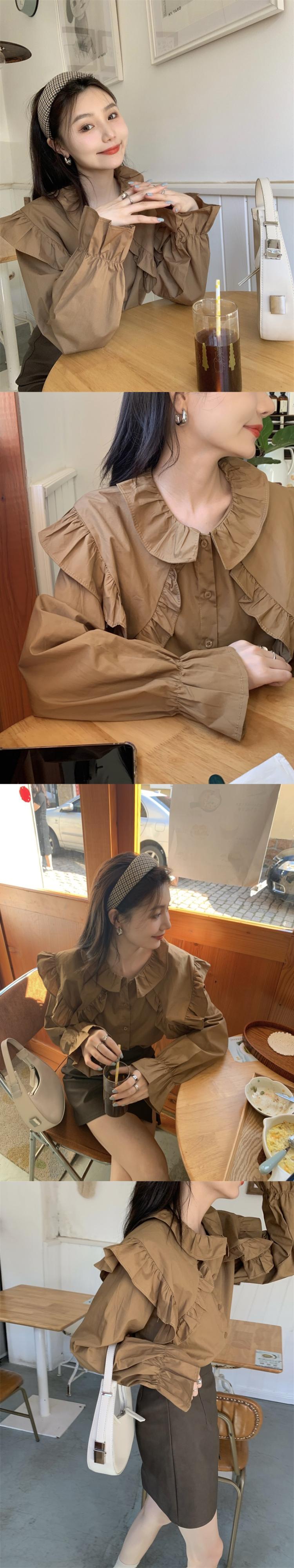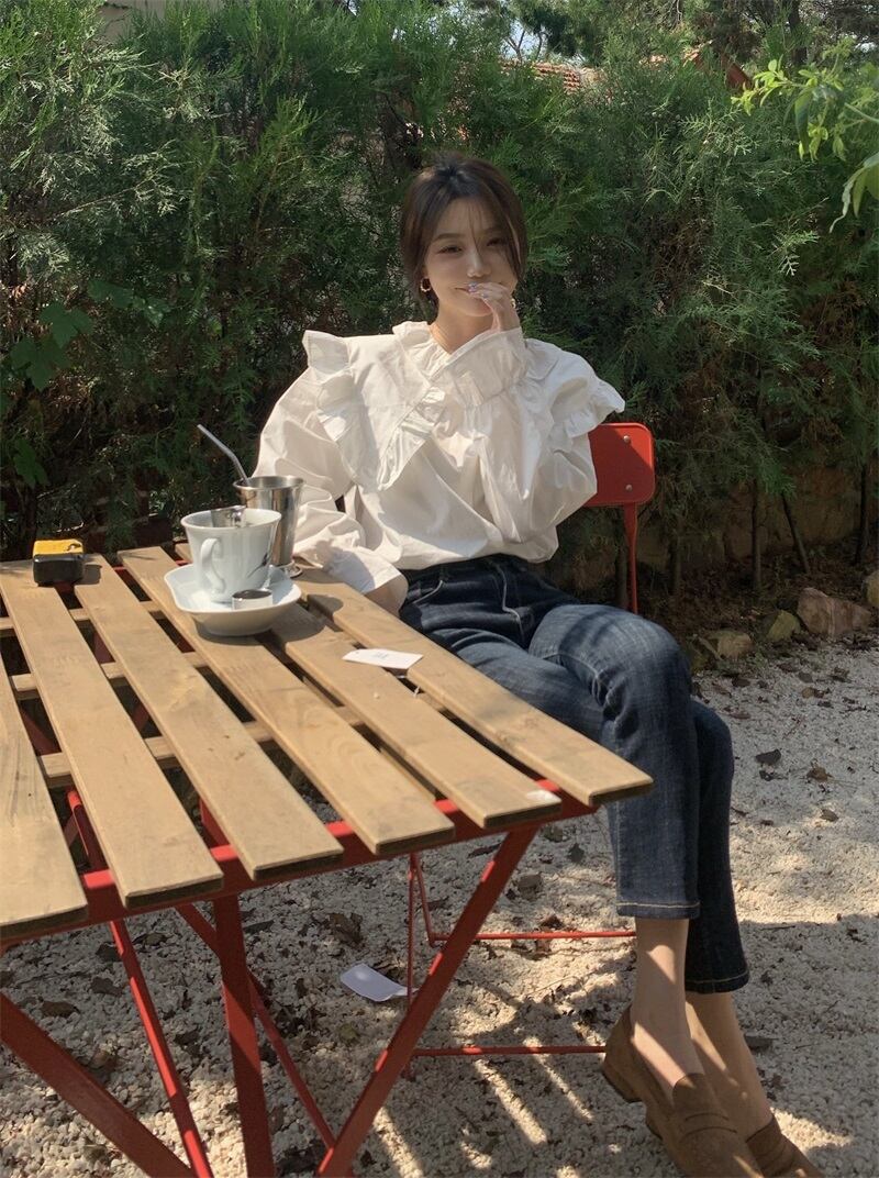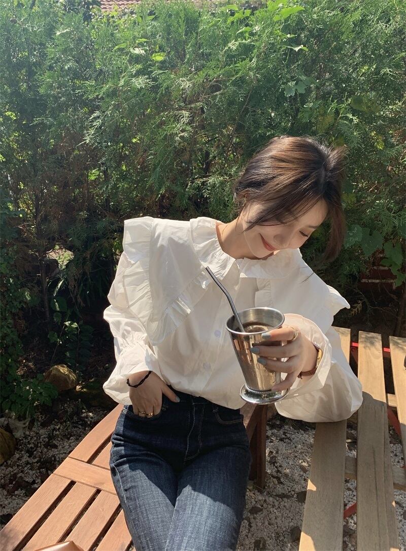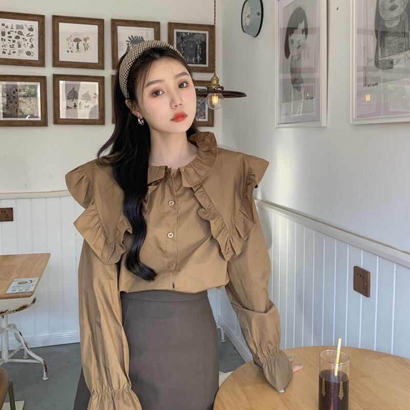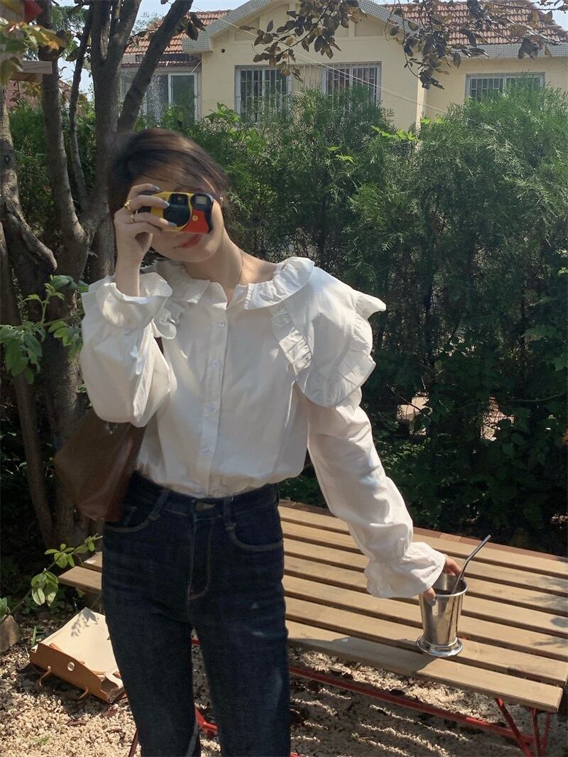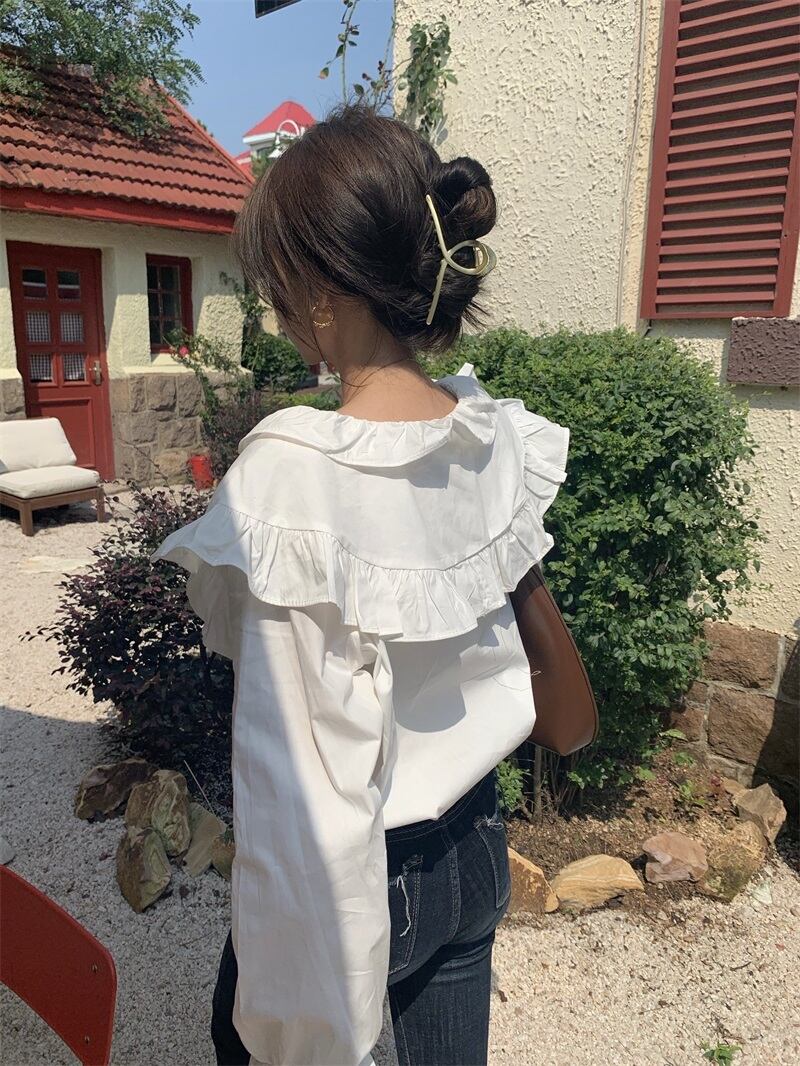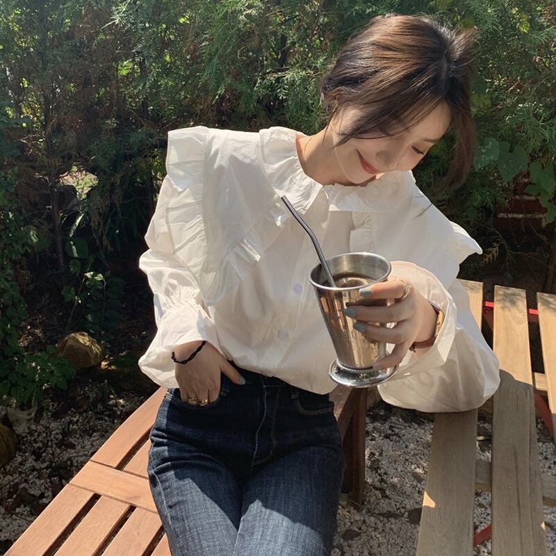 ホワイトカラーシャツ スプリングトップス ロング 大人ガーリー スウィート キュート カジュアル 春物 長袖 SYJ83360192423