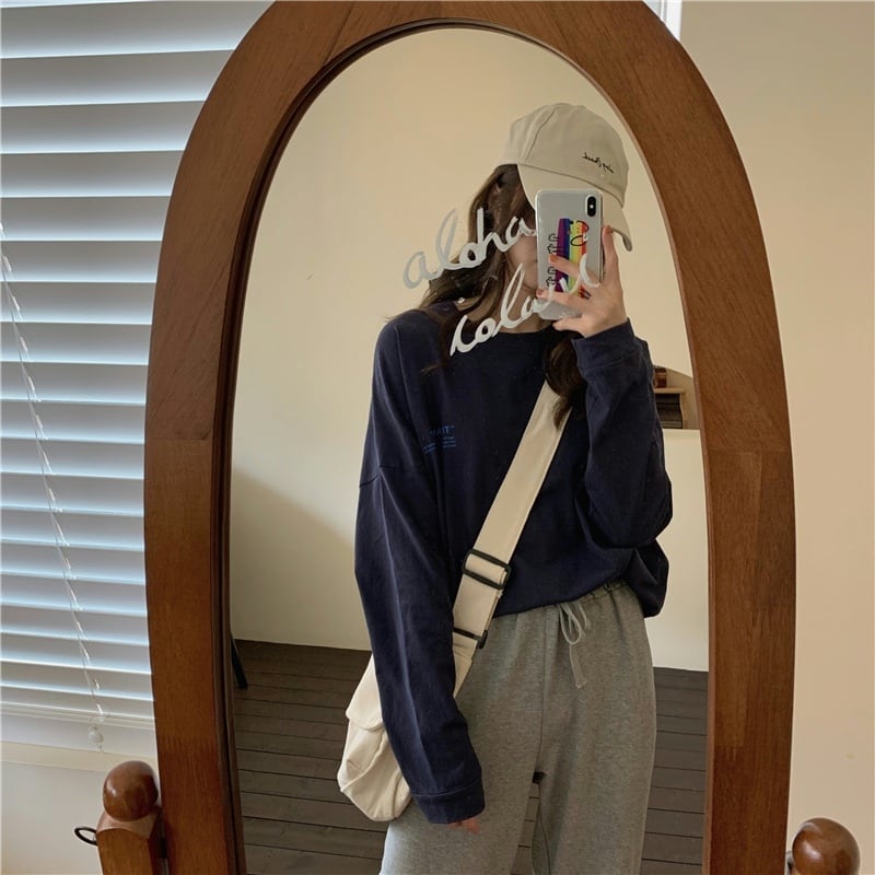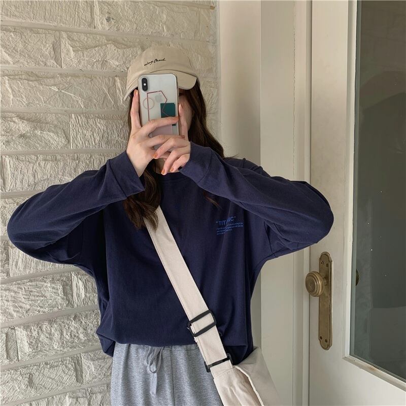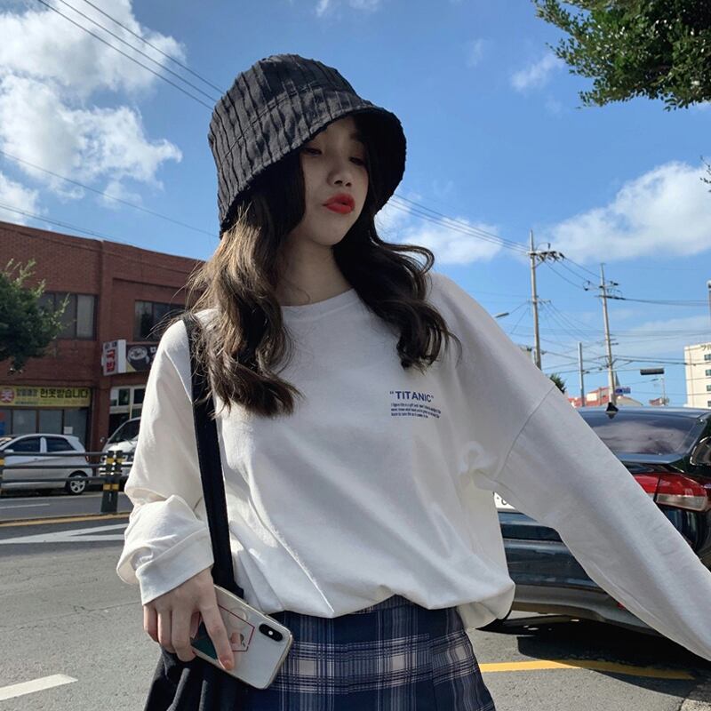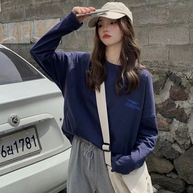 ホワイトTシャツシャツ スプリングゆったりルーズトップス NEW ロング 春物 長袖 SYJ57884019498