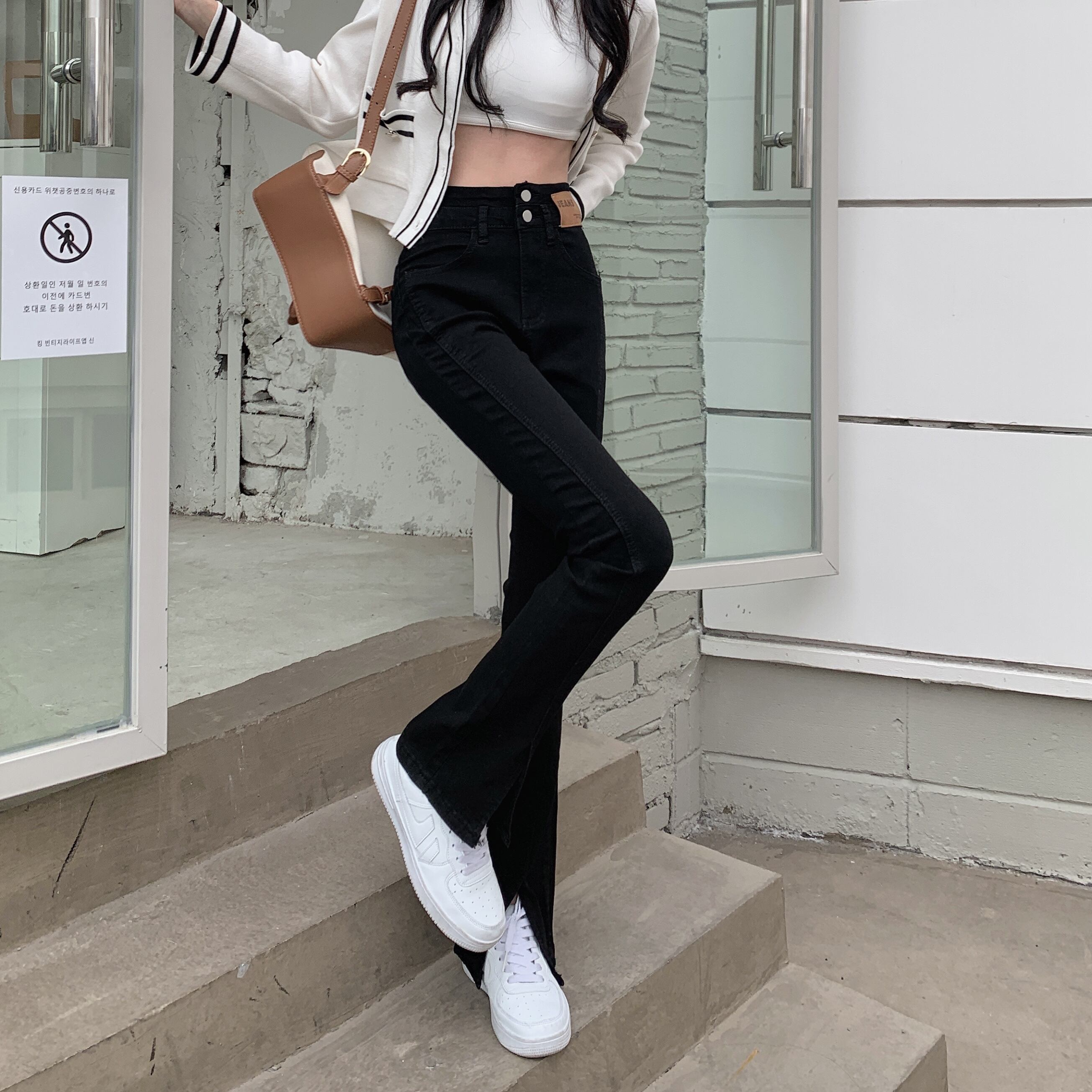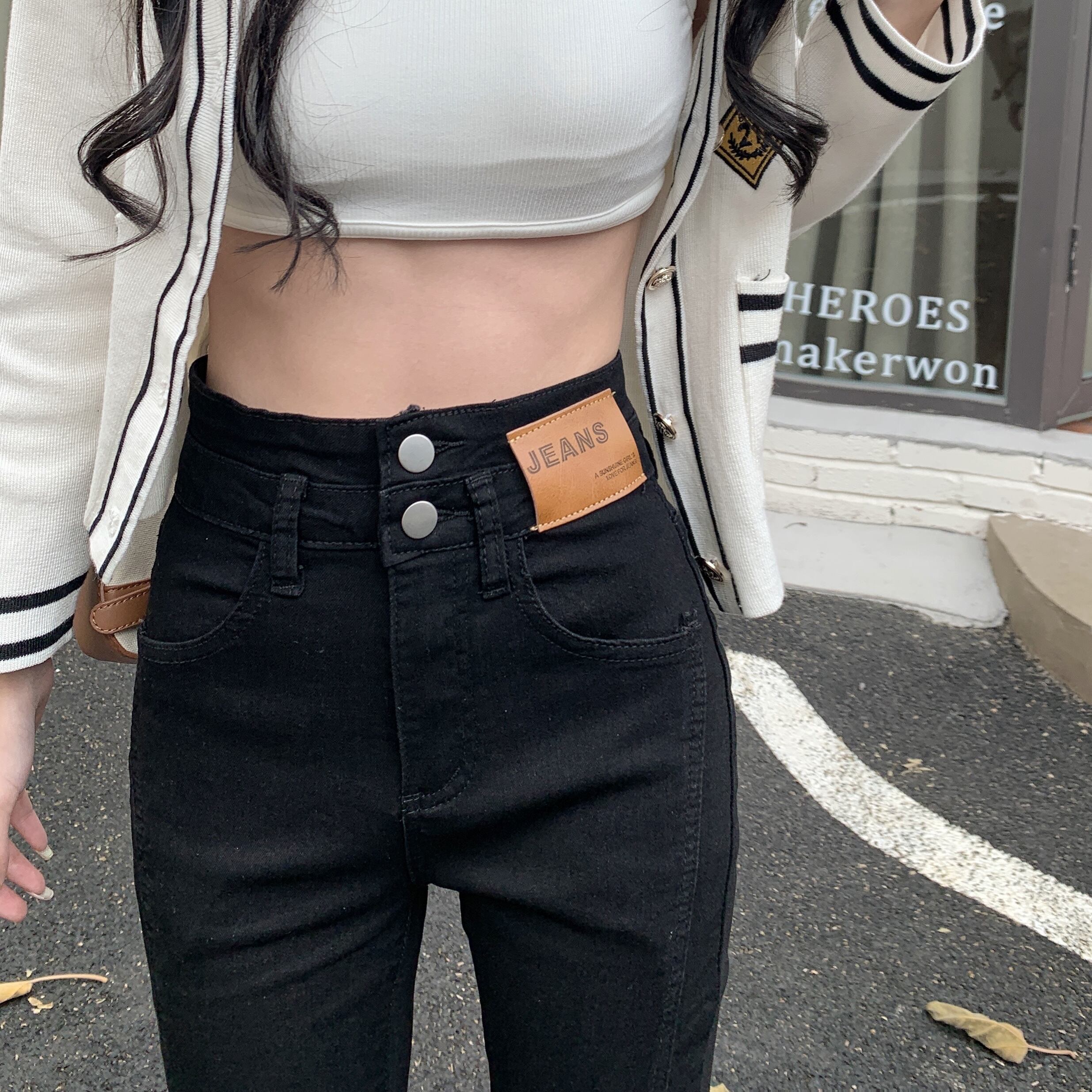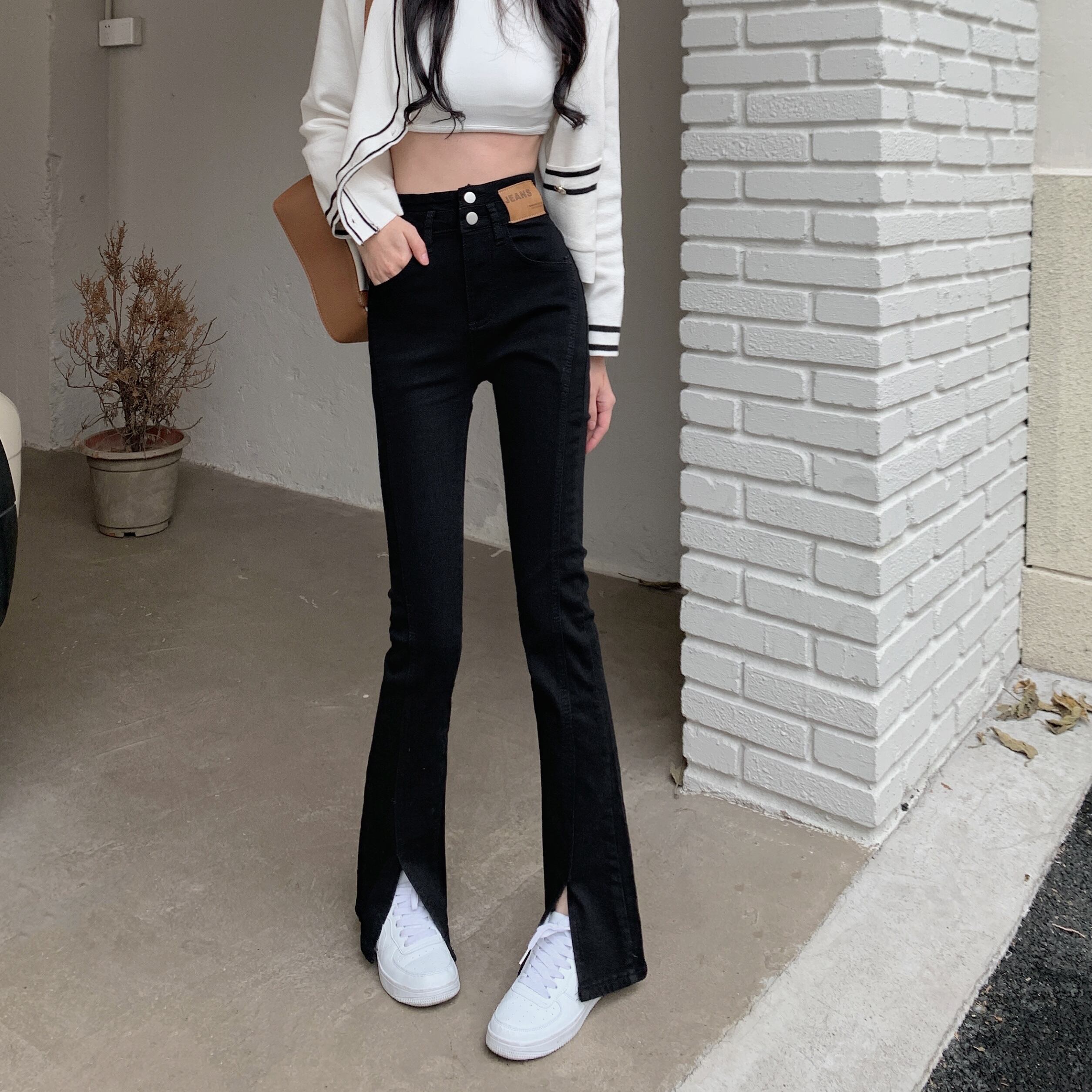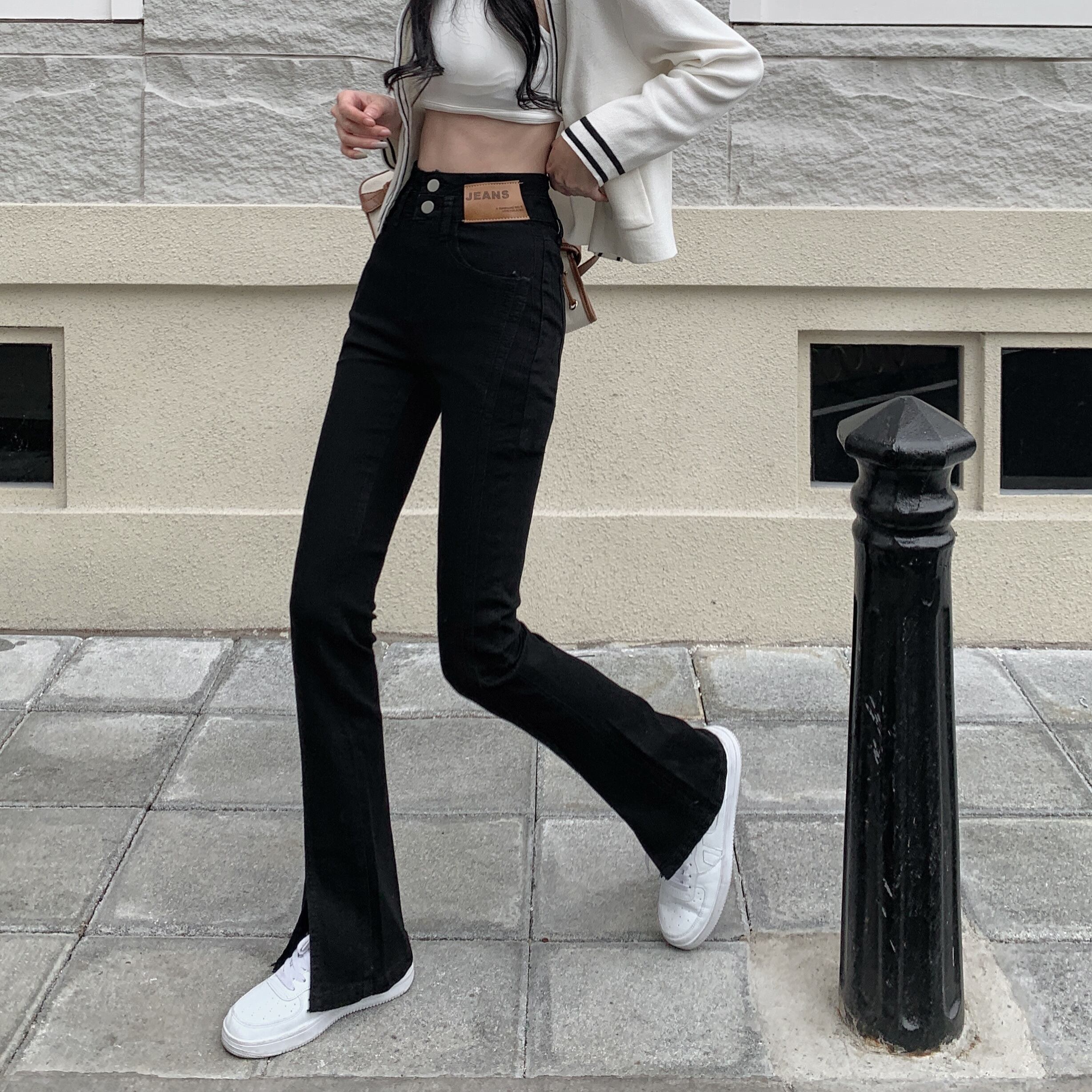 ブラックスリットジーンズ パンツ スプリングハイウェストスリム レッド 春物 ウエスト SYJ98264445116