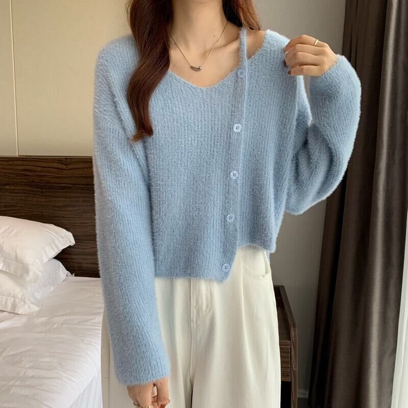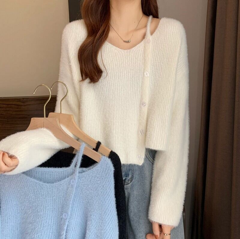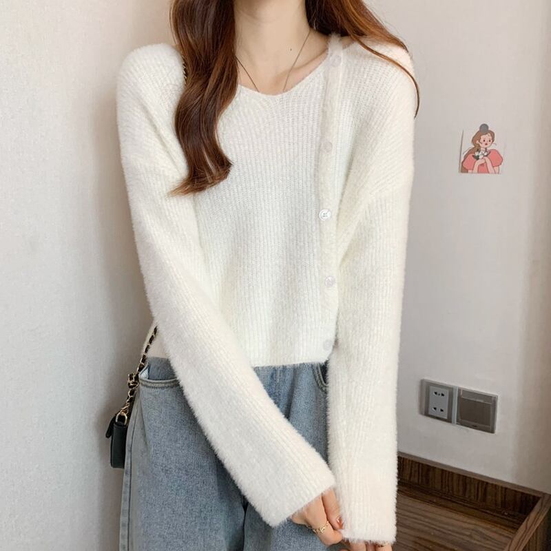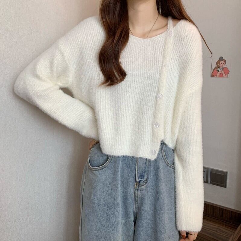 ホワイトショートセーター スプリング秋物ニット 大人ガーリー スウィート キュート カジュアル 春物 オータム SYJ26612953902