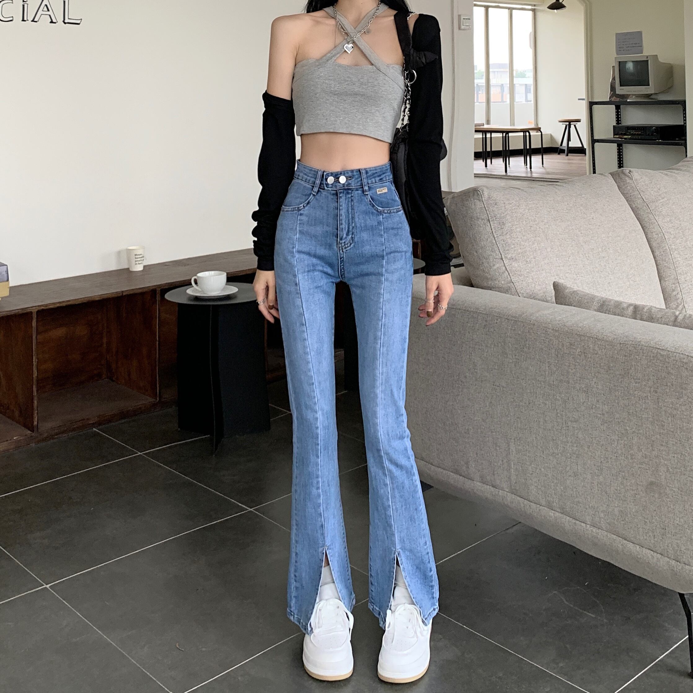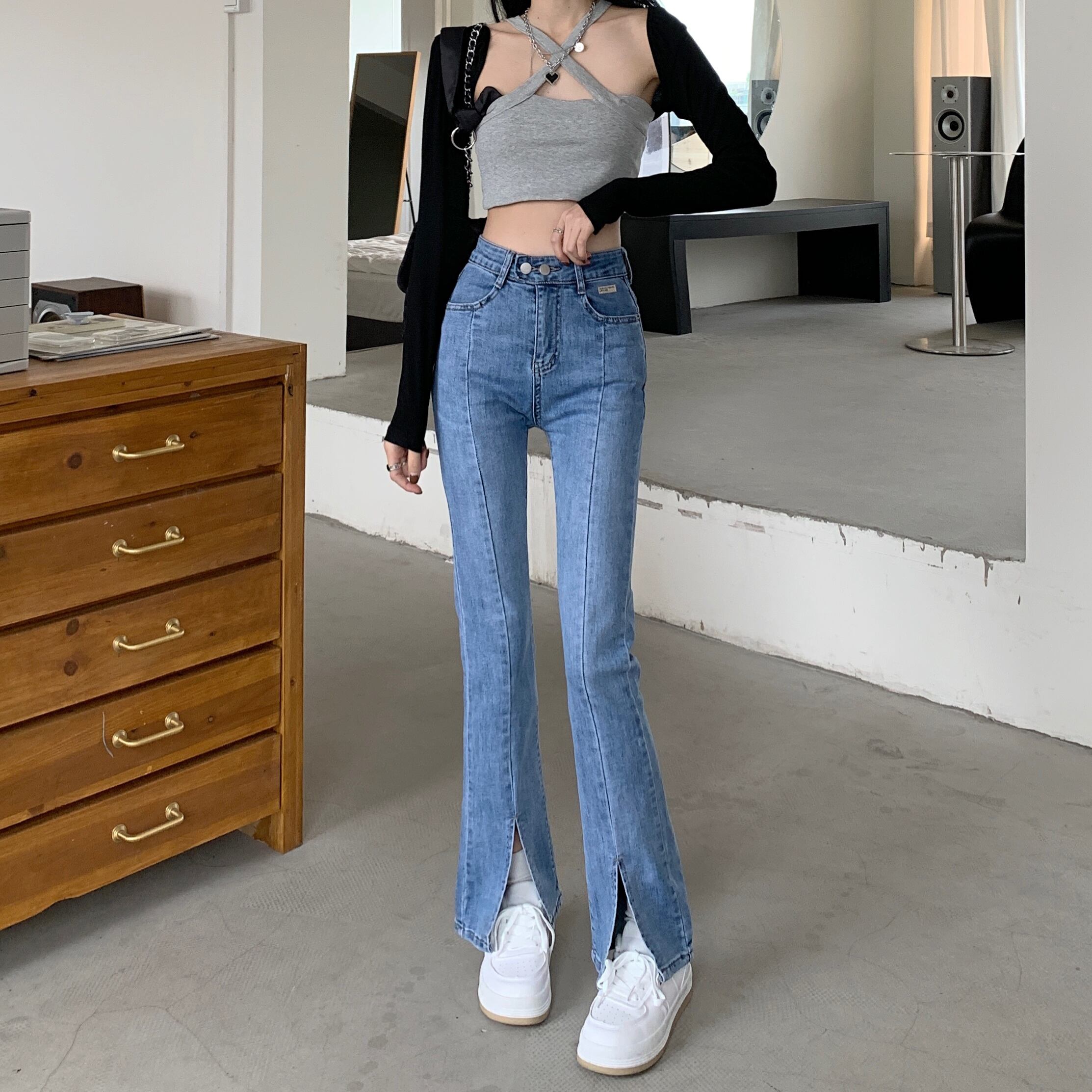 ブルージーンズ スプリングハイウェストスリムパンツ レッド 春物 ウエスト SYJ57572052449