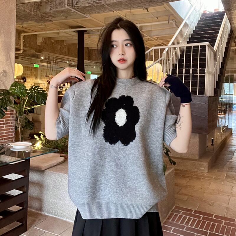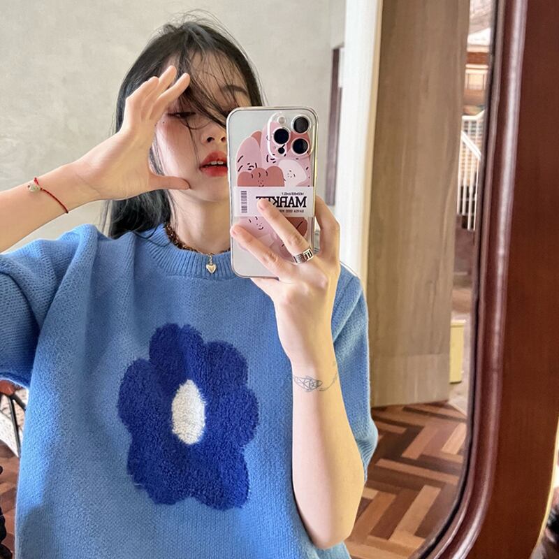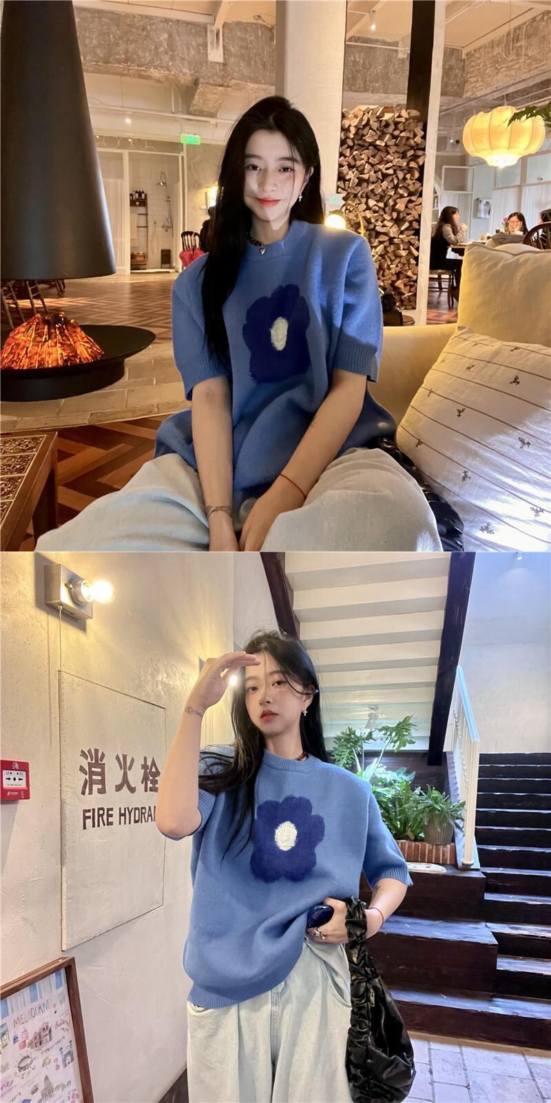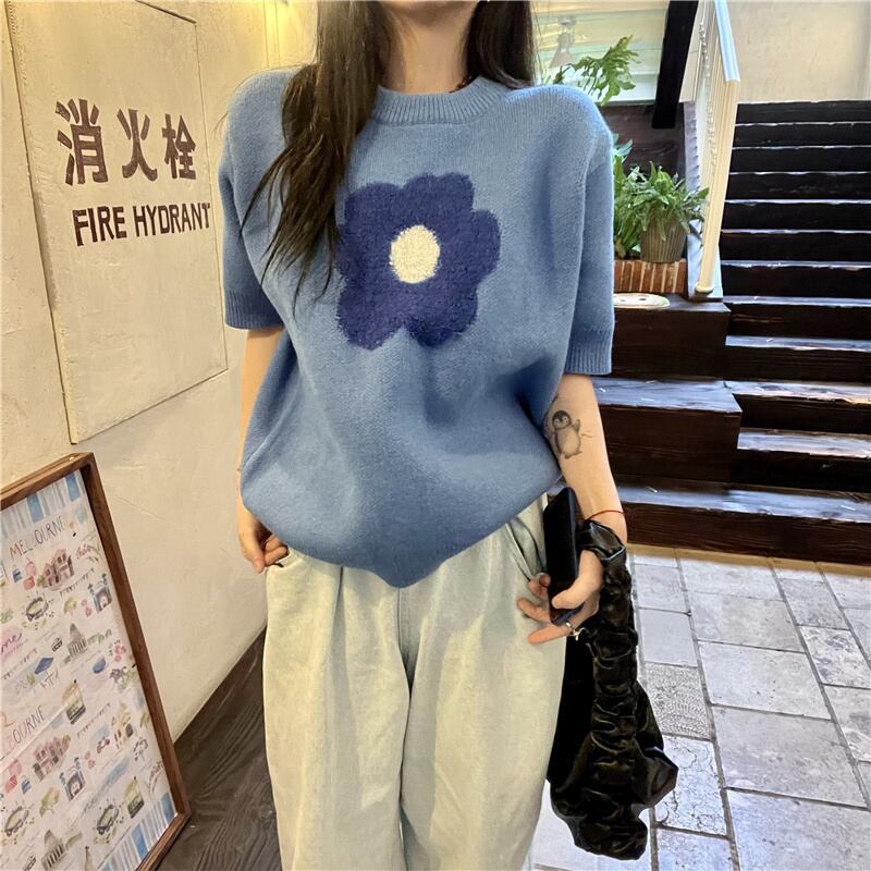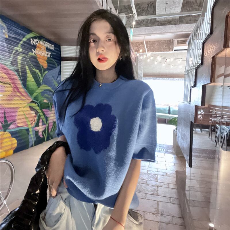 ブルーラウンドネックセーター トップス スプリング レッド 春物 Oネック SYJ43068598873