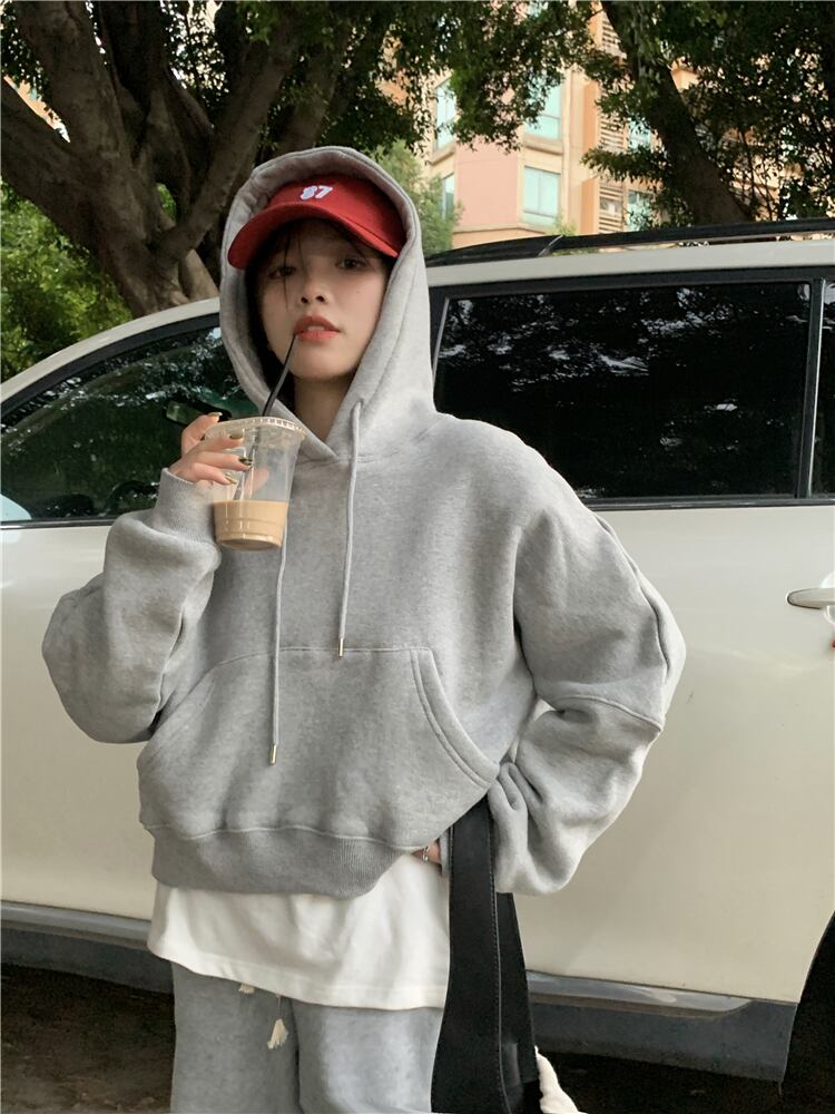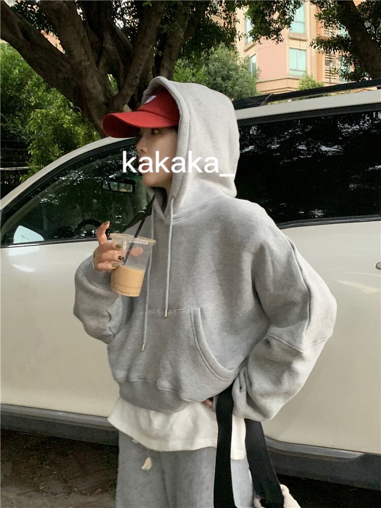 グレー厚みフードショートセーター スプリング秋物ルーズトップス ロング 春物 オータム ボーイズ 長袖 SYJ46868059085
