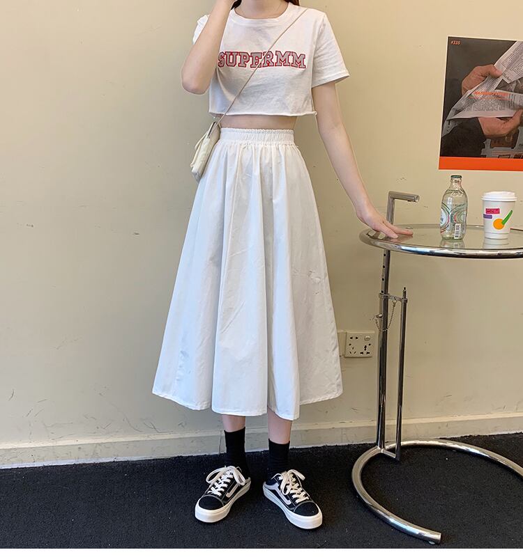 ホワイトスカート 夏服ハイウェストAラインNEWスタイル 夏物 ウエスト ミドル丈 SYJ51999040962