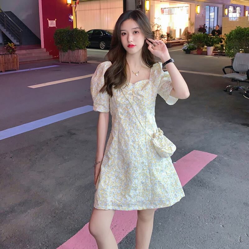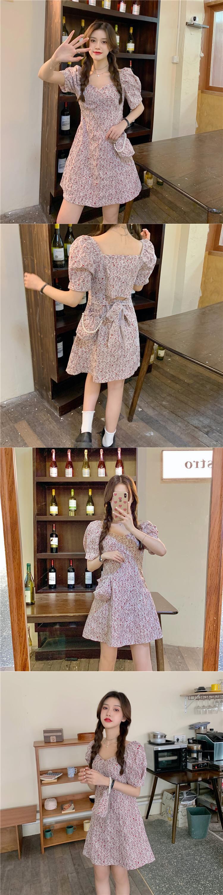 フローラルワンピースレディース夏服スタイルカラーショートスカート 夏物 花柄 スクウェア パフスリーブ SYJ97874763816