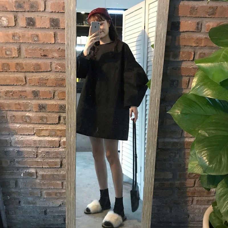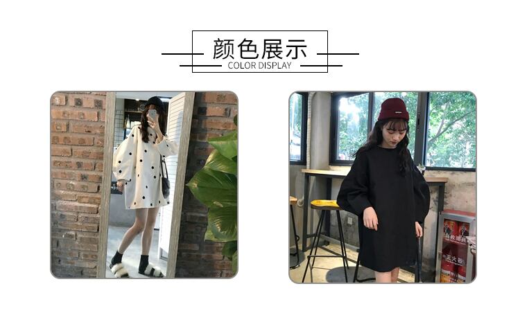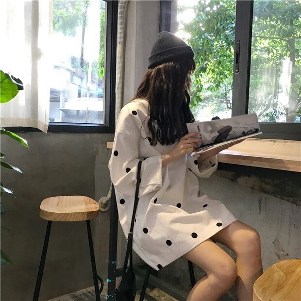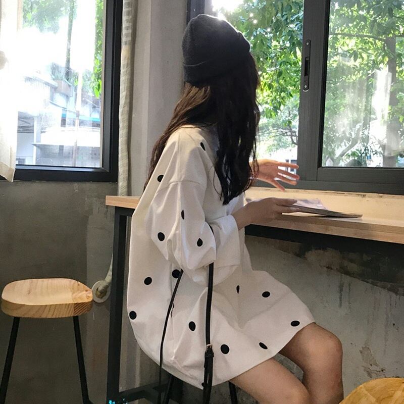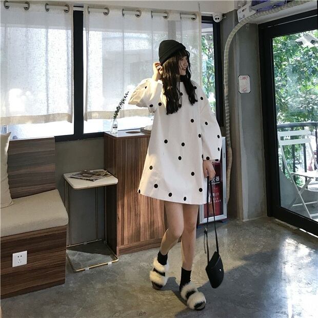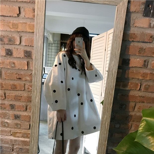ホワイト水玉ワンピーススプリング秋物ルーズショートスカート ロング 春物 オータム 長袖 SYJ74032672229