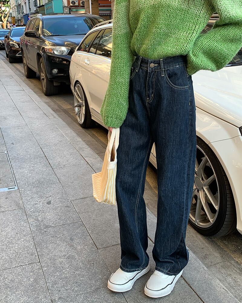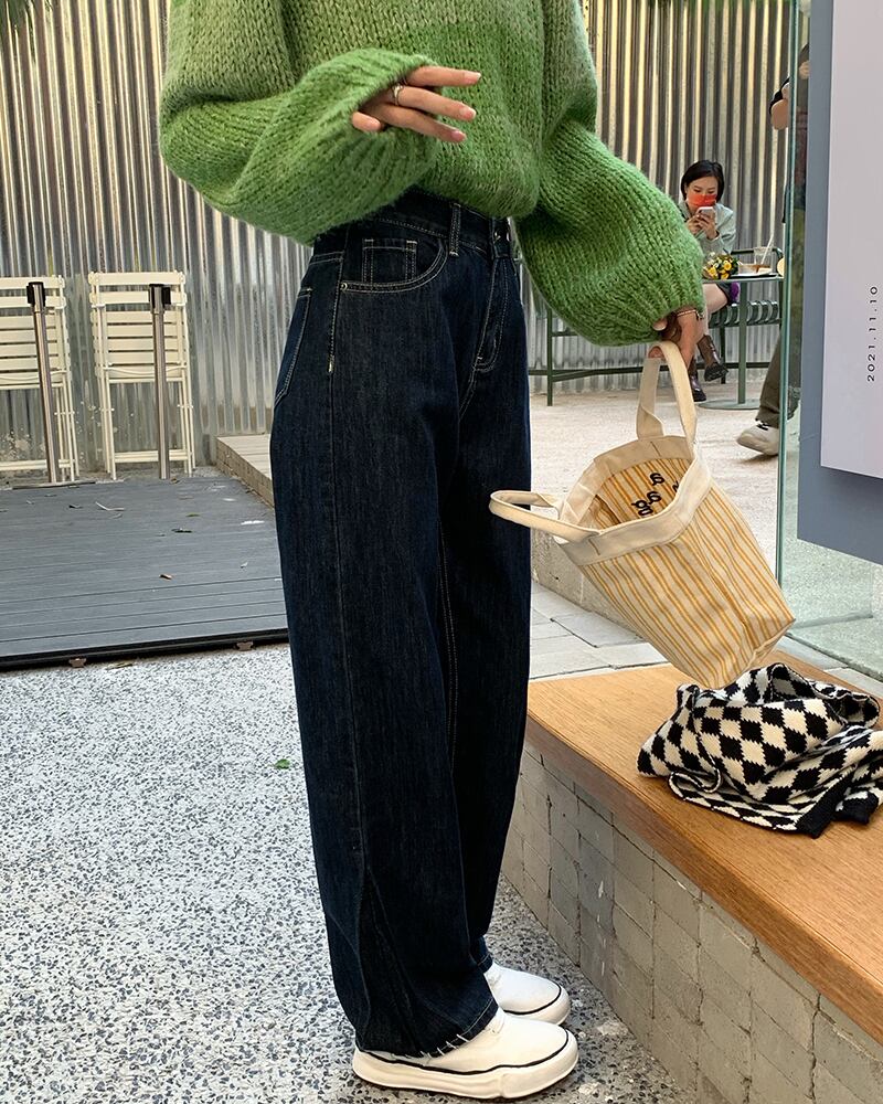ダークブルージーンズ スプリング秋物ルーズハイウェストウェストワイドレッグパンツ NEW 春物 オータム ワイドパンツ ウエスト SYJ11568589481