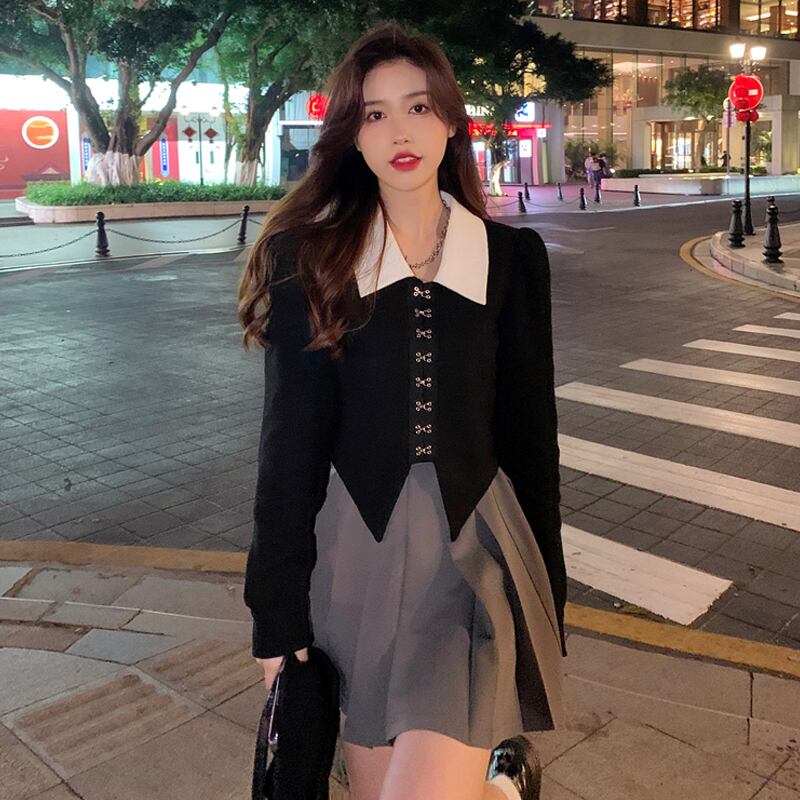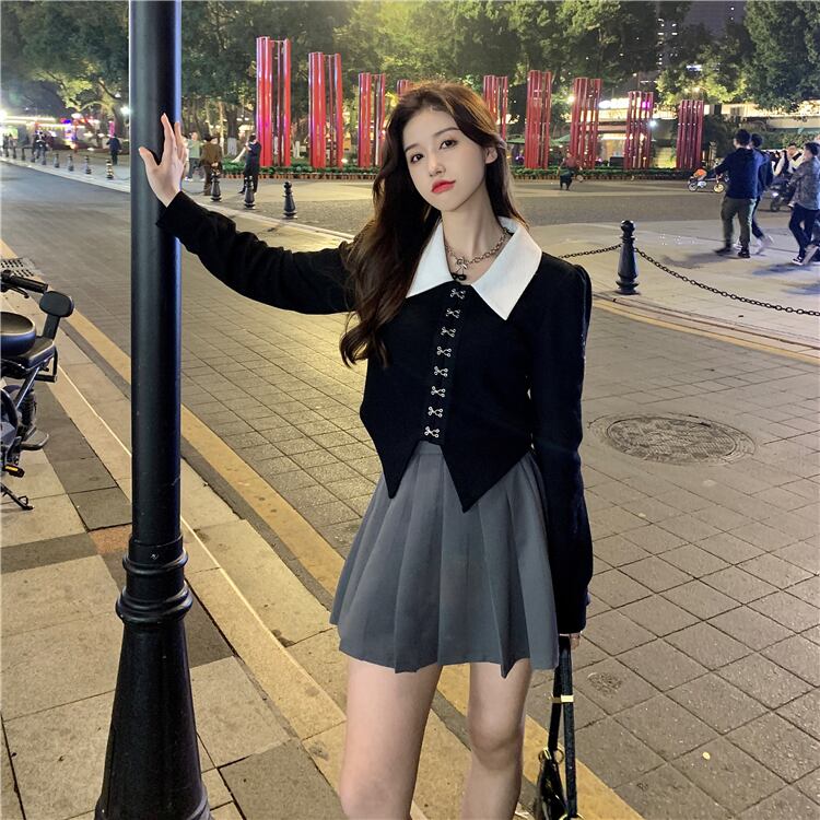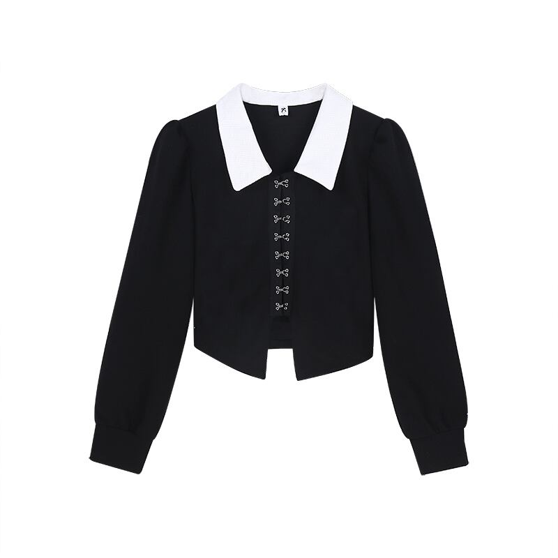ショートトップス スプリングブラックシャツ 春物 SYJ89770800321