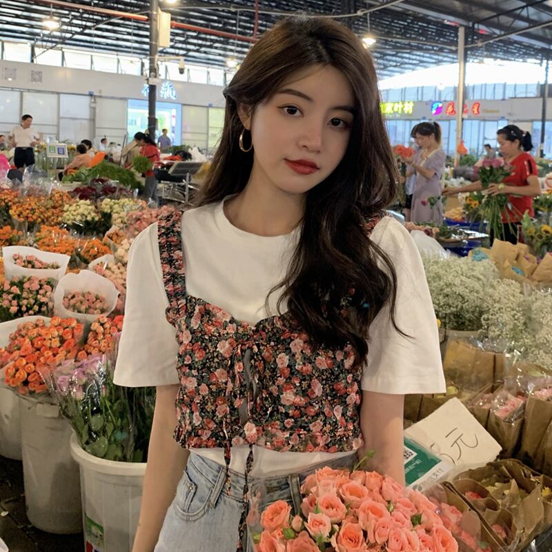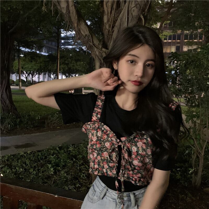 色:黒のTシャツシングルピース,ホワイトTシャツシングルピース,花柄のストラップ