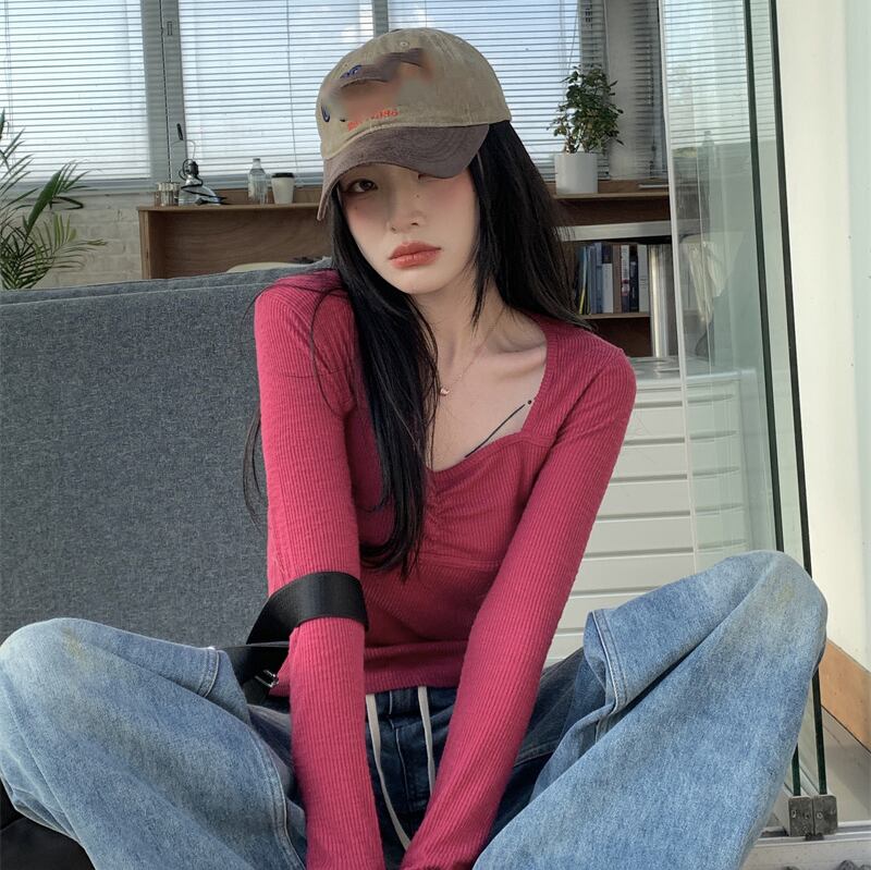 レッドTシャツスプリングスリムショートトップス NEW ロング 春物 長袖 SYJ29329361297