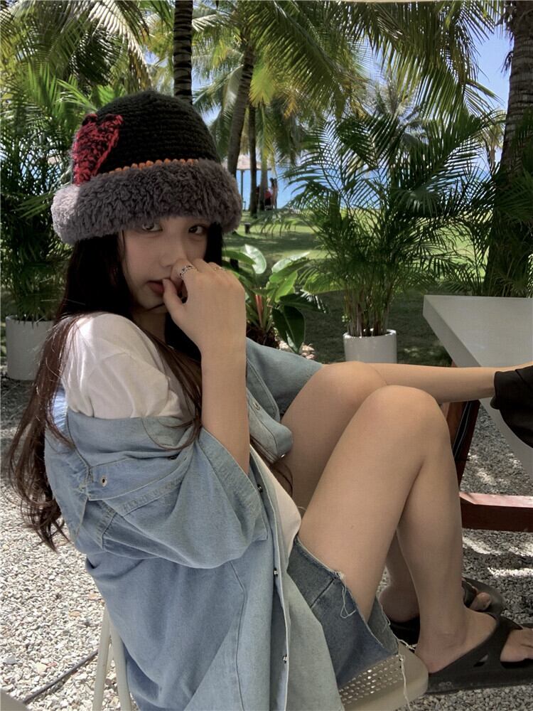 色:ホワイトコットンTワンピース,ブルーデニムシャツ,デニムショーツシングルピース