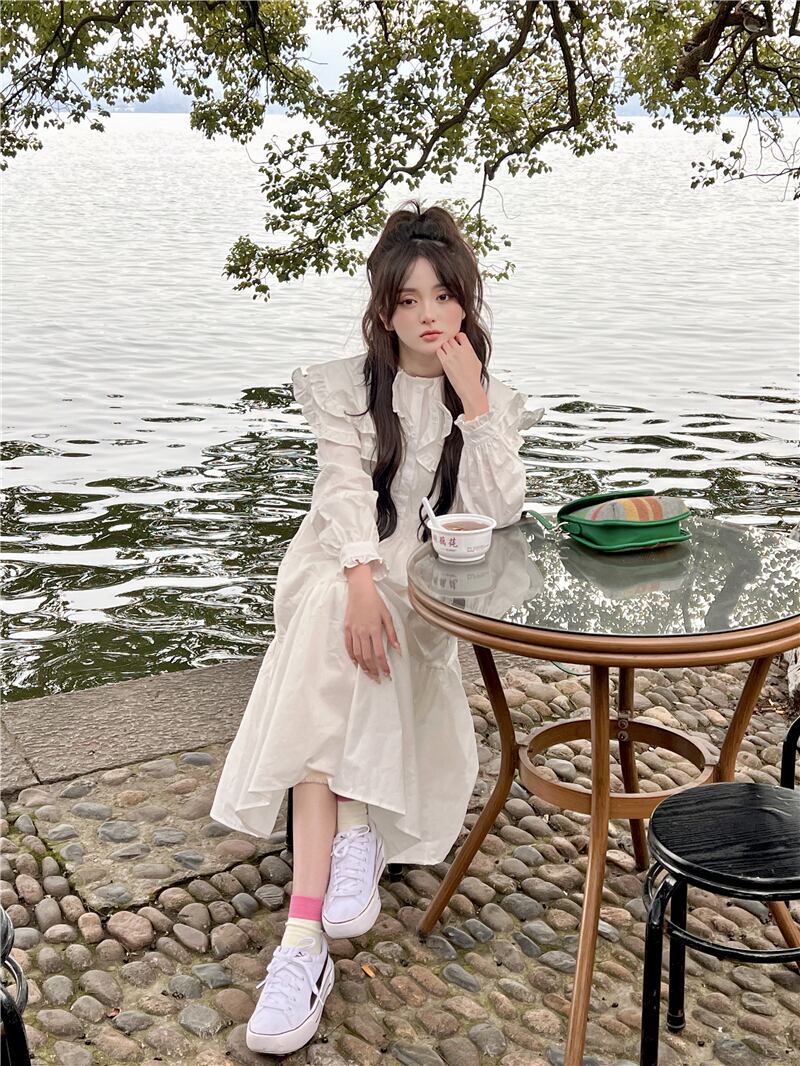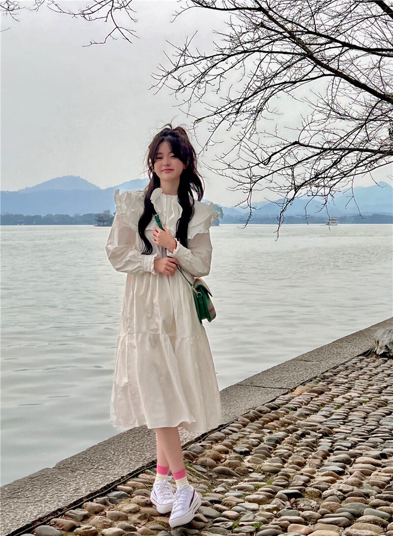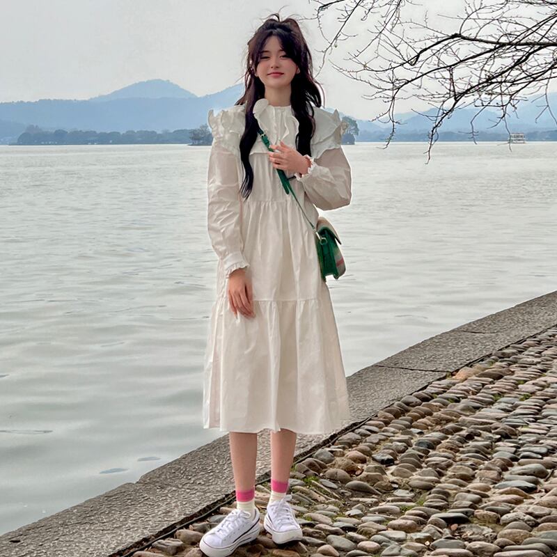 カラーワンピーススプリング韓国ファッションホワイトロングスカート 大人ガーリー スウィート キュート カジュアル 春物 SYJ20153049759
