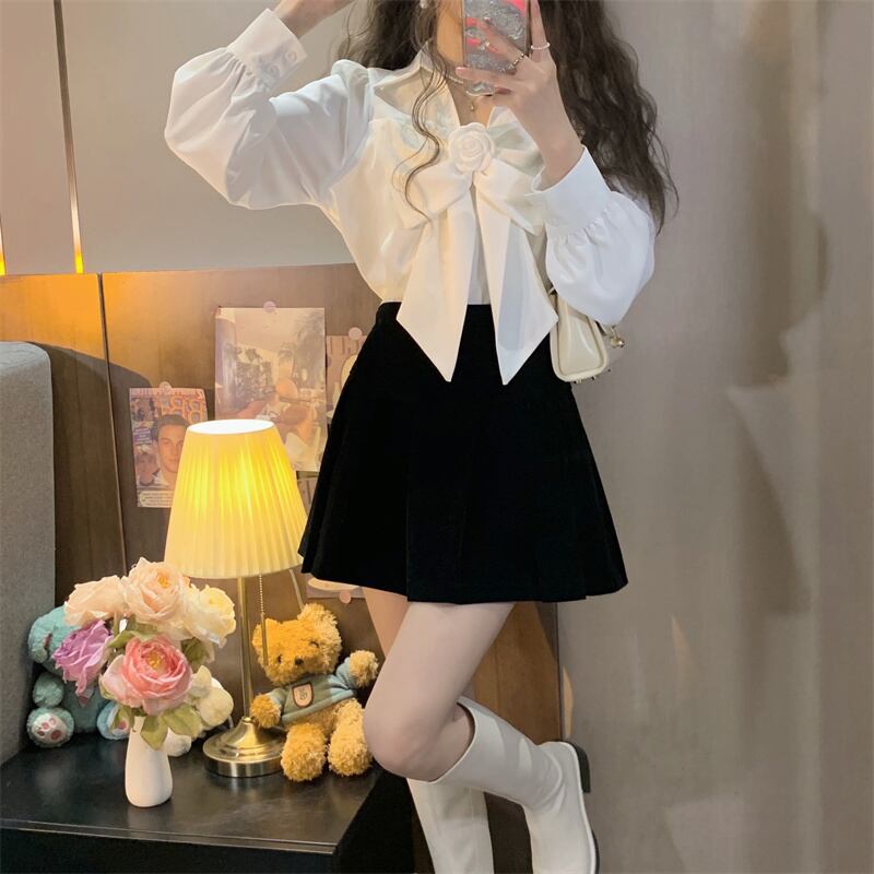 ホワイトリボンシャツ スプリング秋物トップス ロング 春物 オータム 長袖 SYJ43697836234