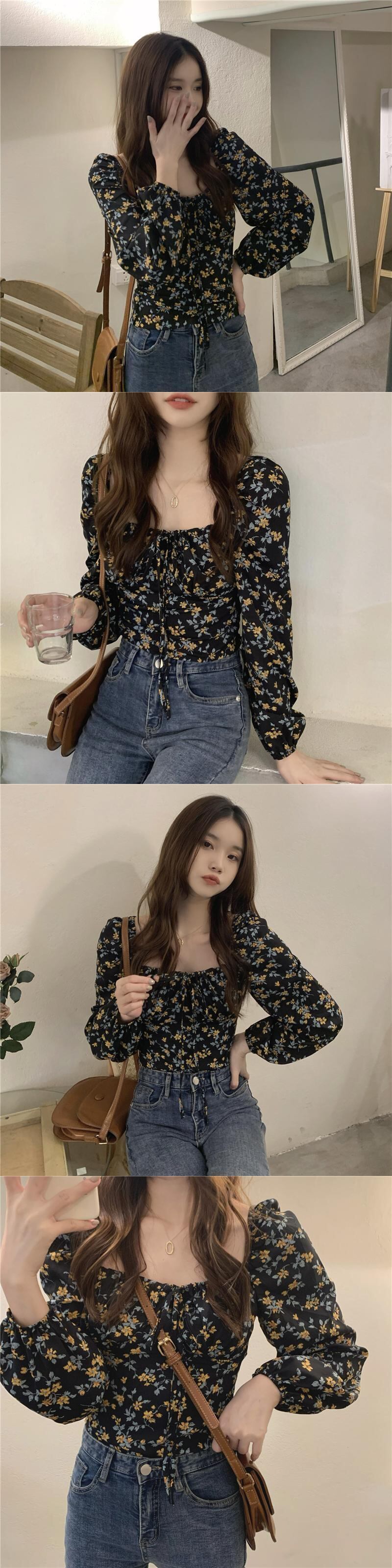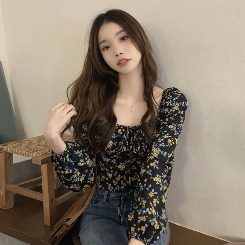 ショートトップス スプリングフローラルシャツ 大人ガーリー スウィート キュート カジュアル 春物 花柄 SYJ53650111469