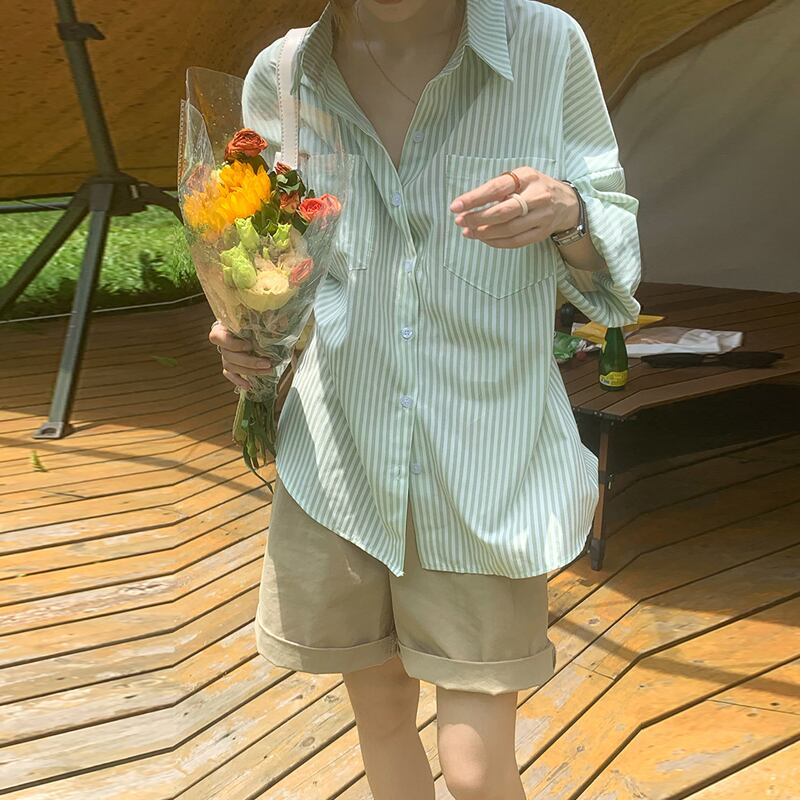 ストライプシャツ スプリング秋物スタイルトップス ロング 春物 オータム 長袖 SYJ77647291139