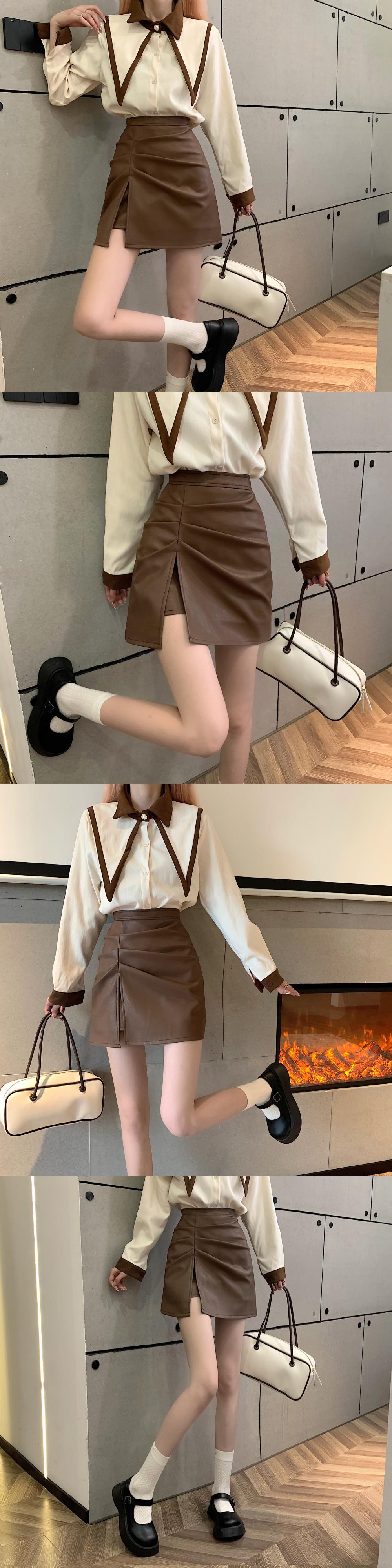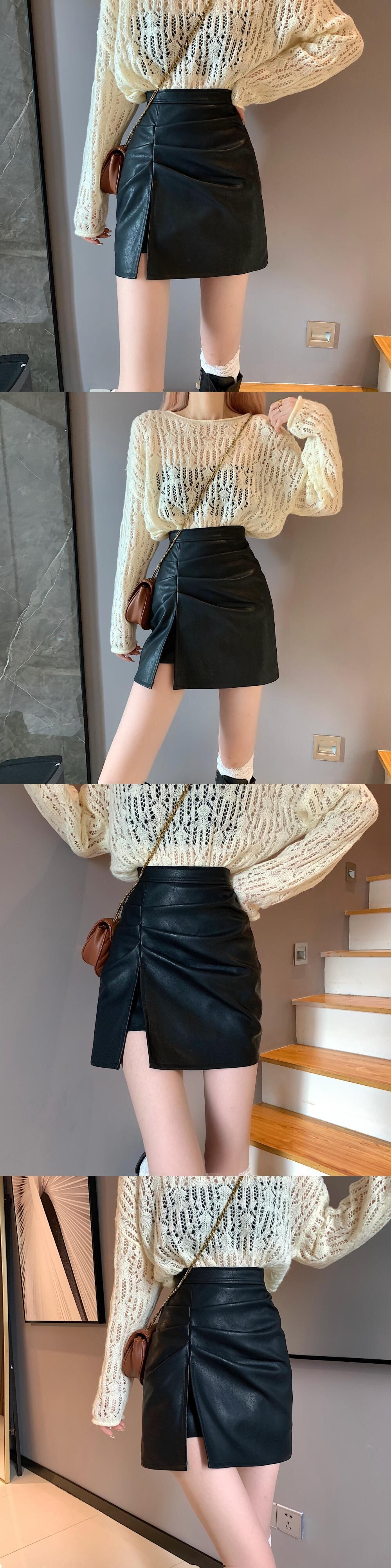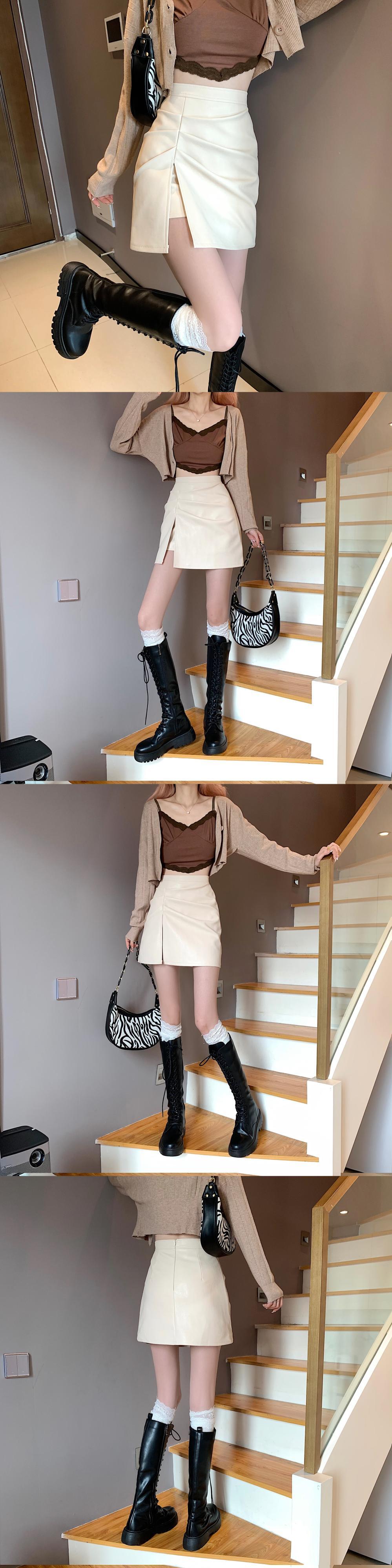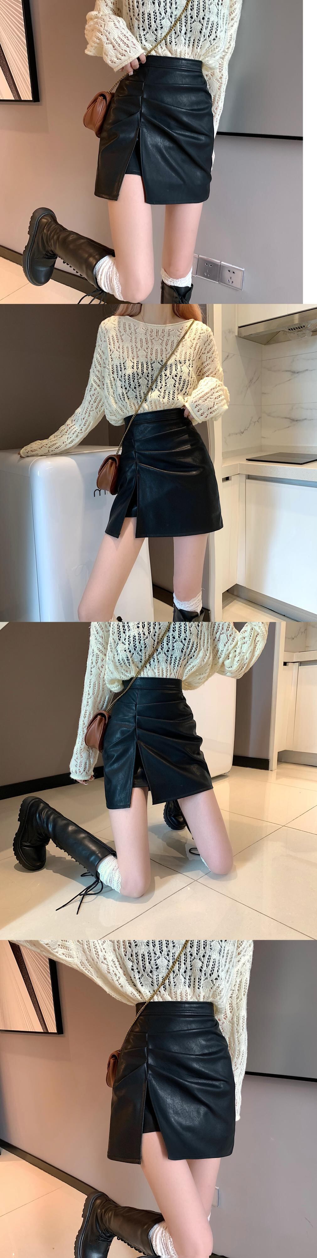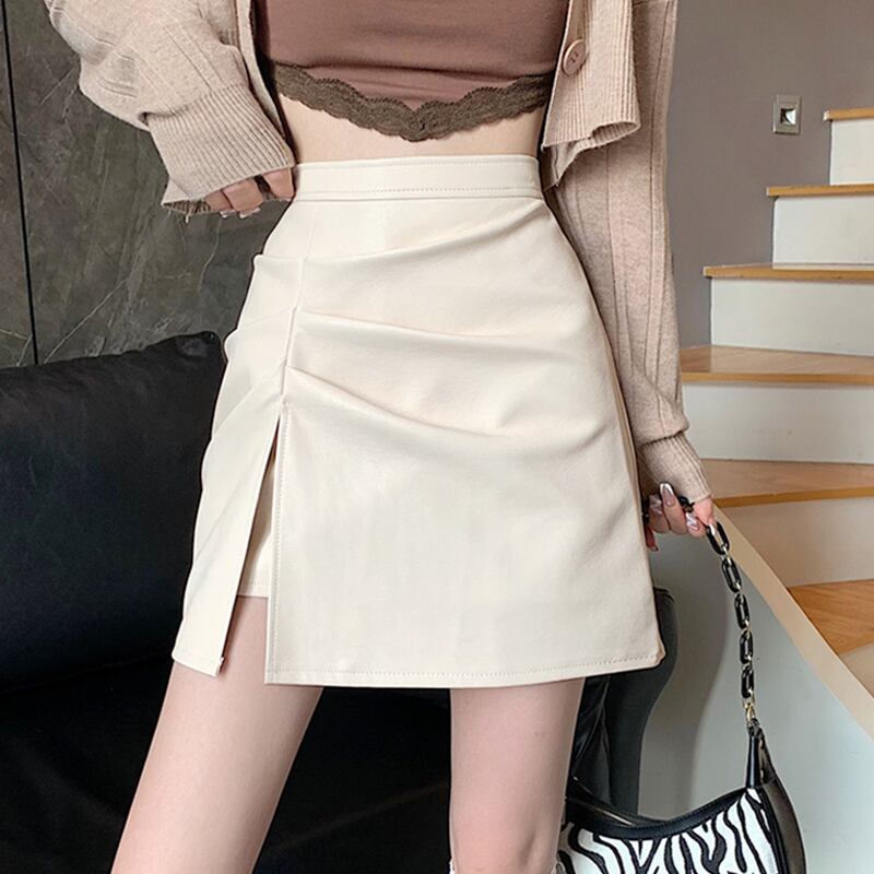 スカート スプリング秋物ウェストAラインレザーショート 春物 オータム ウエスト SYJ19200832565