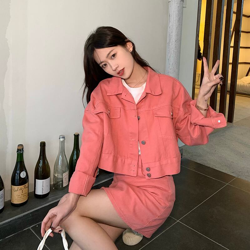 色:ピンクのジャケット一枚,ワンピースアプリコットコート,ピンクのスカートワンピース,ワンピースアプリコットスカート