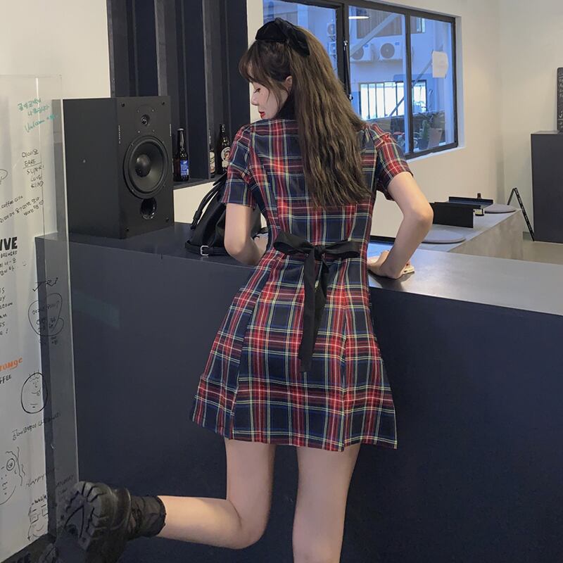スタンダード格子柄ワンピース夏服ウェストショートスカート レトロ 夏物 ウエスト SYJ28361760302