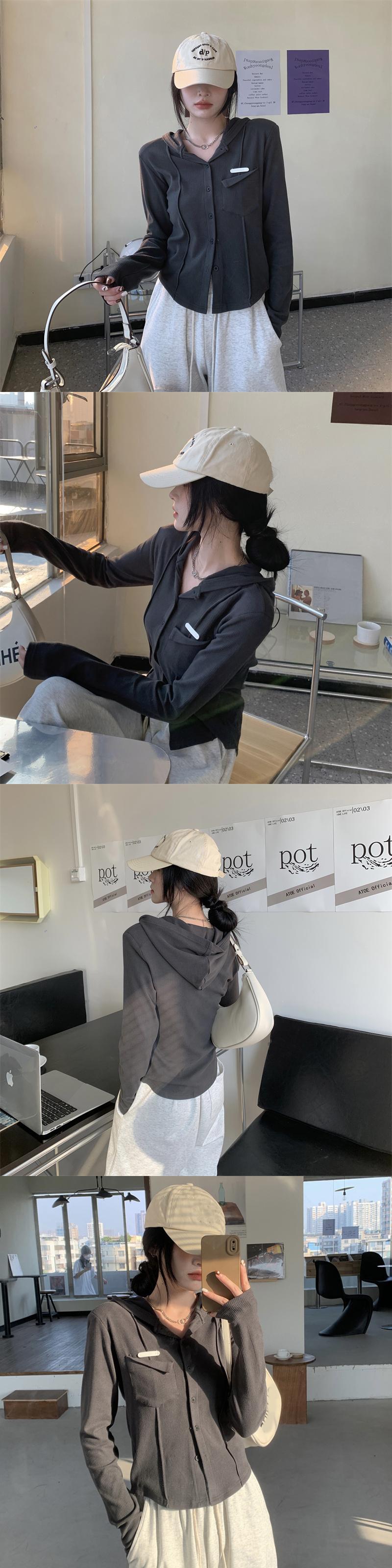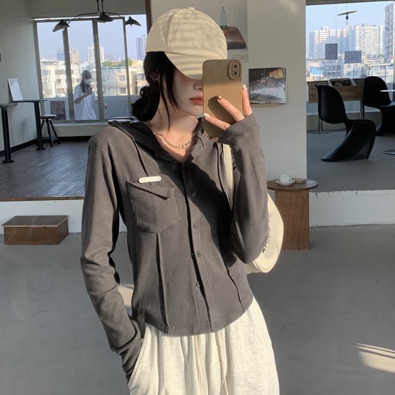 ダークグレーTシャツスプリングフードトップス NEW ロング 大人ガーリー スウィート キュート カジュアル 春物 長袖 SYJ45997392173